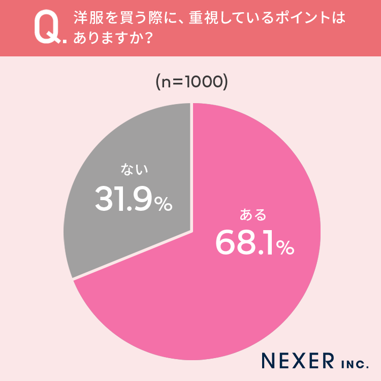 68.1%と7割近くの方が、洋服を買う際に重視しているポイントが「ある」と回答しています。
