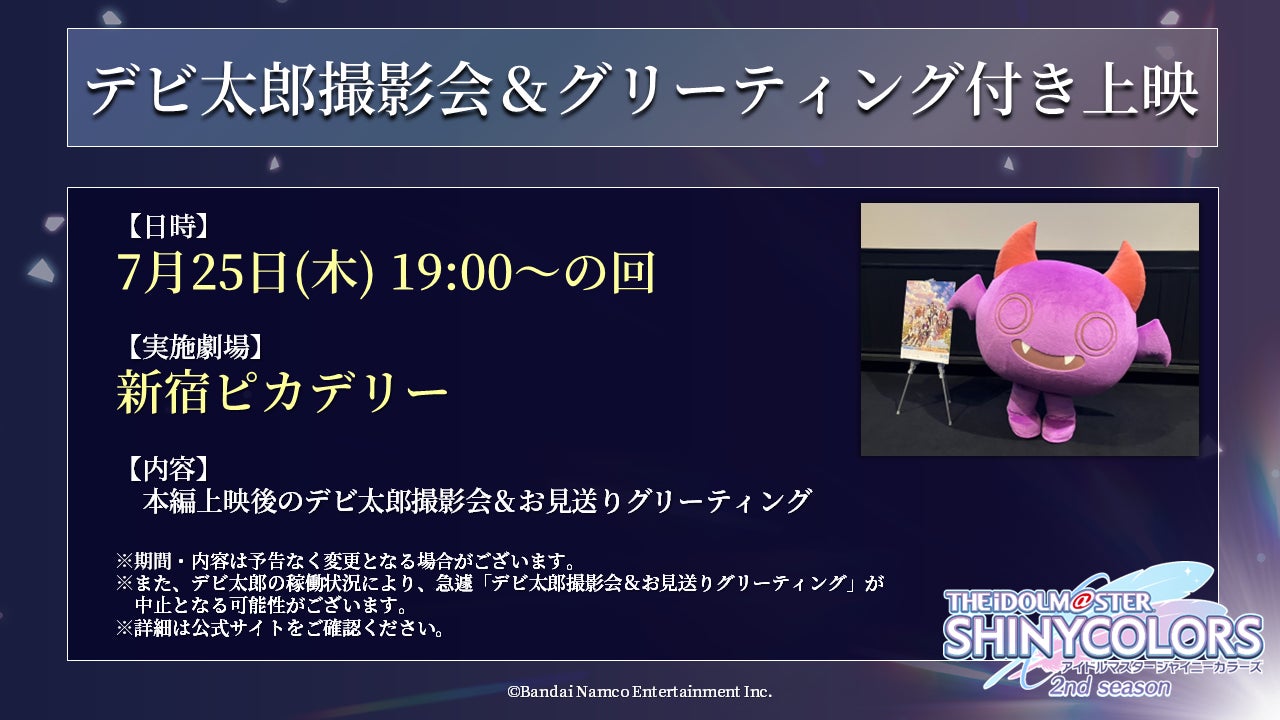 また、7月25日(木)には新宿ピカデリーにて、デビ太郎撮影会&グリーティング付き上映の実施が