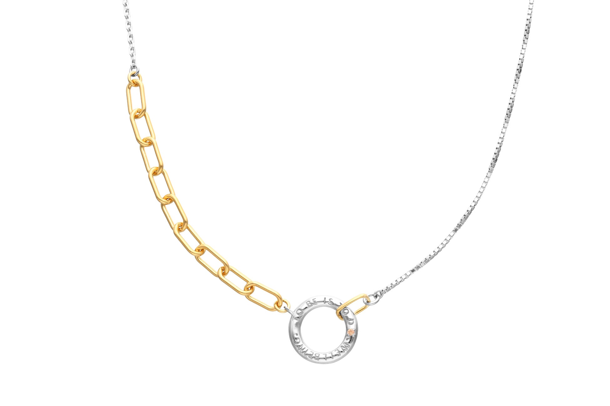 様々な表情をもつチェーンをひとつにつなげ、人と人、心と心の「つながり」を形。中央のリングに刻まれた言葉は、「To Be Is To Do.(存在することは、行うこと)」。哲学者カントの思想に由来し、行動してこそ人は自分自身となる、というメッセージを宿しています。