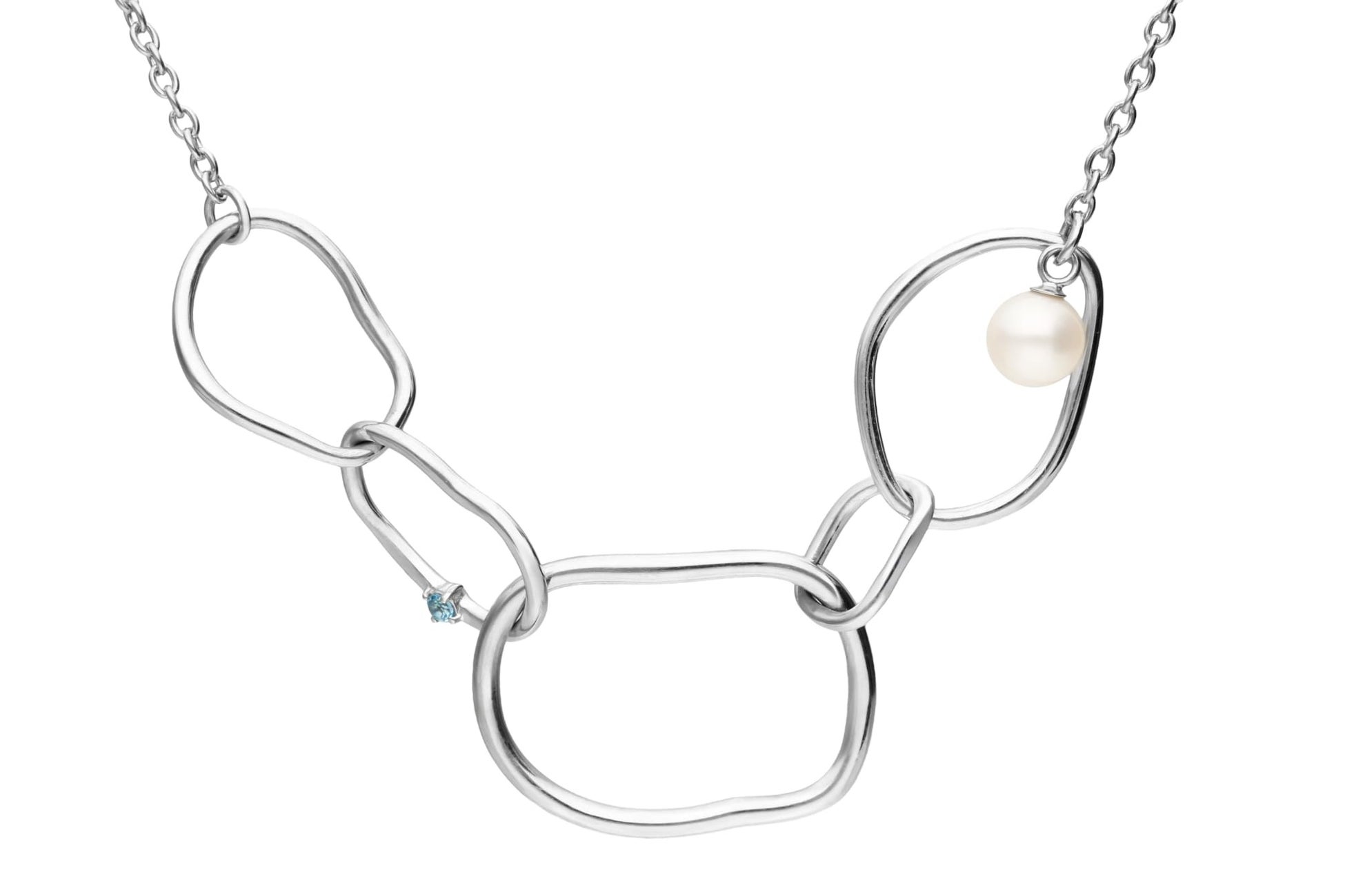 自然を表現した、不定形ながら調和して連なる輪に、真珠とカラーストーンを組み合わせ、上品さと遊び心のバランスを大切にしています。「眼鏡かけ」としても使える実用性を備え、日常のあらゆるシーンで“自分を整える相棒”として活用していただければ光栄です。