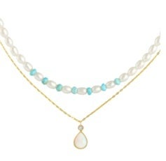 「こうしてほしい」という一方的な “WANT ”ではなく、“I WISH you a good luck ”(うまくいくといいね)と、幸せを願い合う関係性をテーマにした2連ネックレス(別売り)。ターコイズとオパールが美しく煌めきます。重ねづけも、大切な人とシェアするのも楽しめるデザインです。