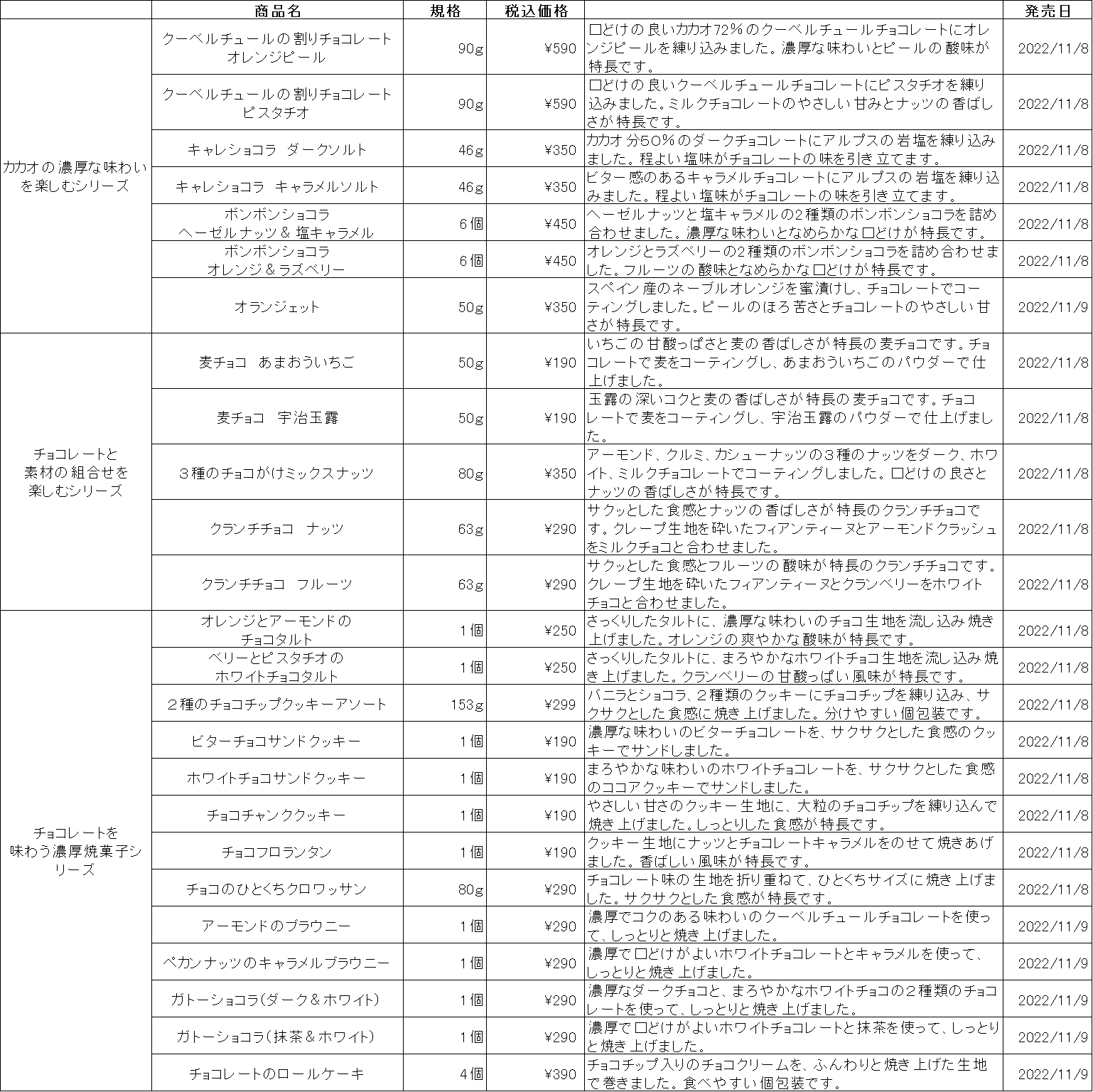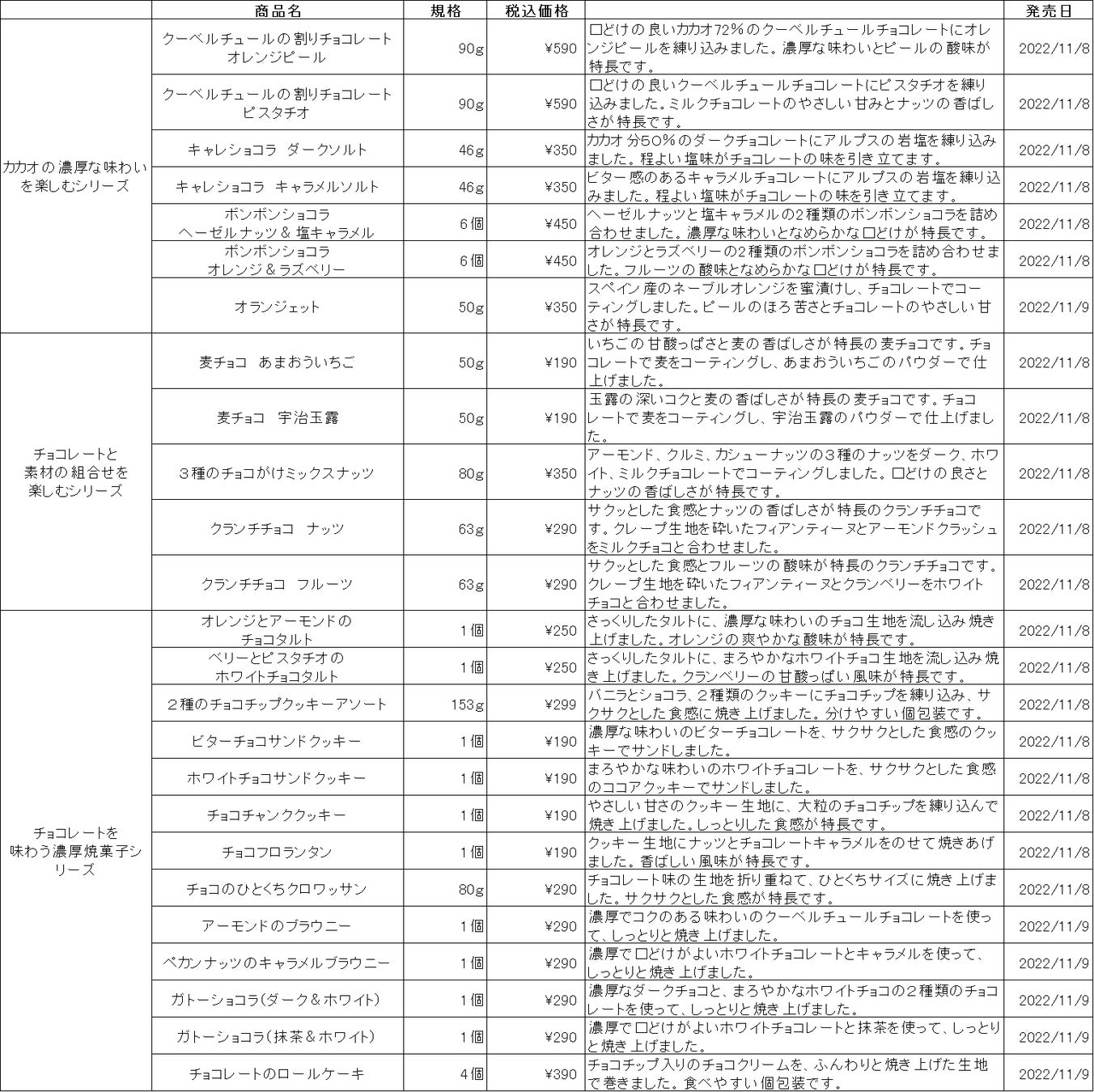 - チョコレートと素材の組み合わせを楽しめる商品