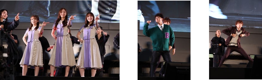ここでイベントは中締めの時間に。これまでの感想について聞かれたはじめしゃちょーさんは「高校時代、受験勉強を本気でやりすぎて(文化祭を)さぼっちゃいました。今日はそれを取り返すかのように楽しめているので、幸せいっぱいです」、乃木坂46の秋元さんは「即興ダンスに取り組めたことで、ダンスってやっぱり元気出るんだなと感じられました。後半も楽しんでください」、梅澤さんは「雰囲気が学園祭で、すごく楽しめました」と充実した姿を見せました。そして、参加者全員がステージに登場し、記念撮影が行われました。