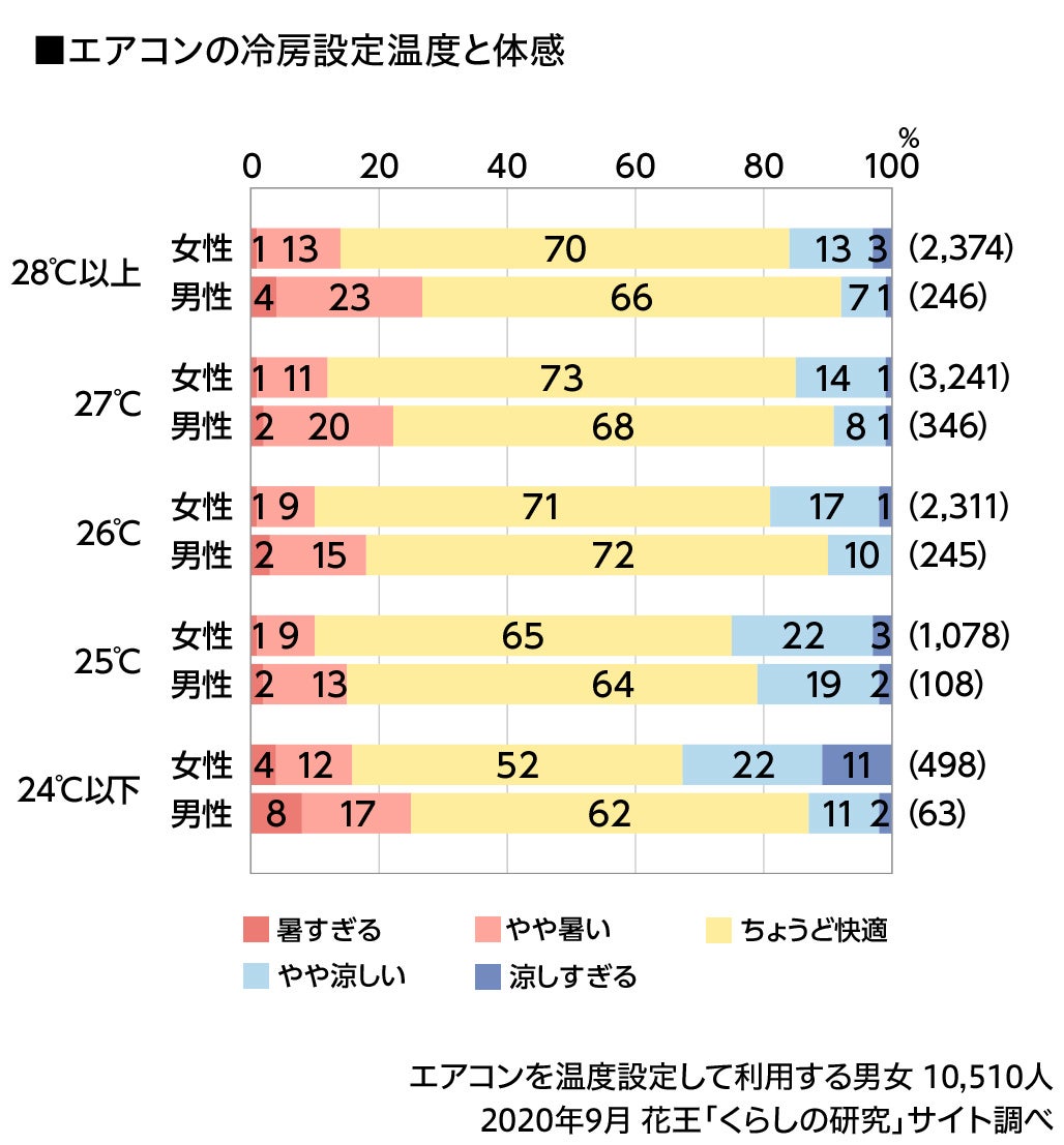 冷房の「快適温度とおもい」には男女差あり 節電要請に備えるこの夏、我慢より賢く省エネを 花王 生活者情報開発部「くらしの研究」にて、7月5日公開