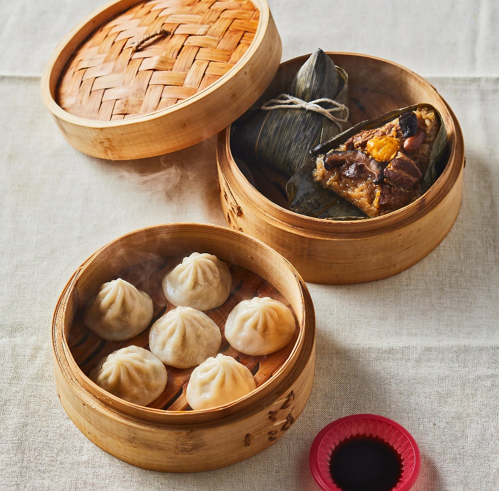 左下)小籠包(6個入り)770円 右上)ちまき(1個)528円