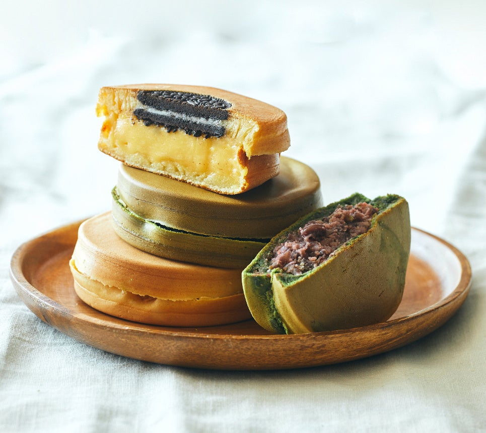 車輪餅〈チョコクッキー(チョコクッキーとカスタード)・ミックス(あんとカスタード)・芋あん(紫芋とカス タード)〉各1個 301円台湾の町で見かける車輪の形の焼き菓子。実はそのルーツが日本の今川焼(回転焼)と言われています。チョコクッキーやタピオカクリームなど多彩なフレーバーからお好みをチョイスして。