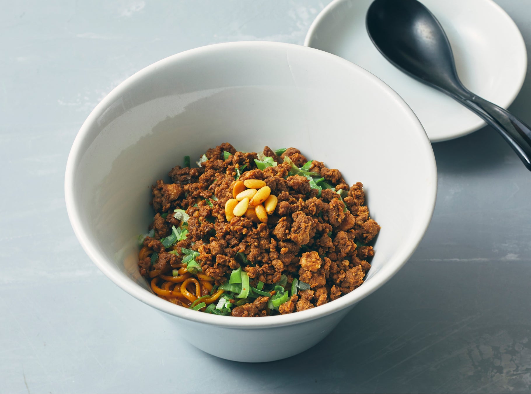 元々は中国・四川で生まれた汁なし担担麵。台湾出身の店主こだわりのブレンド醤油やすりゴマと練りゴマ、スパイスを駆使した担担ダレがもちもち食感の平打ち麺に絡む一杯。麻(マー)の痺れと辣(ラー)の辛さ、2つの刺激がクセになる味わいです。