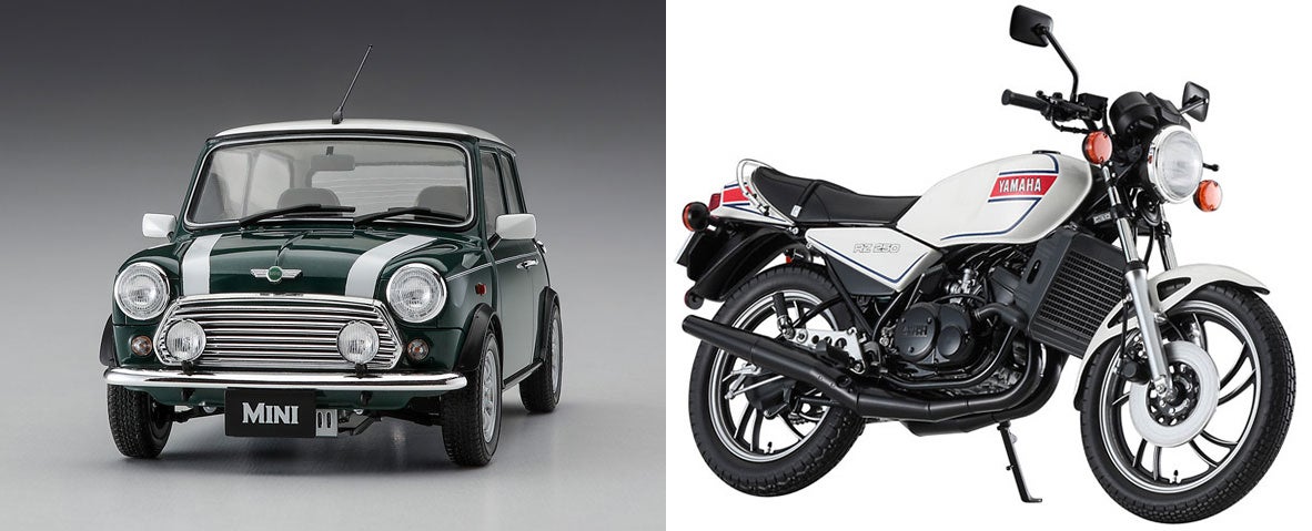 昭和世代に刺さる!?愛され続ける『ミニ クーパー 1.3i』や、伝説の2ストローク・スポーツ『ヤマハ RZ250』プラモが「あみあみ」にてご案内中。
