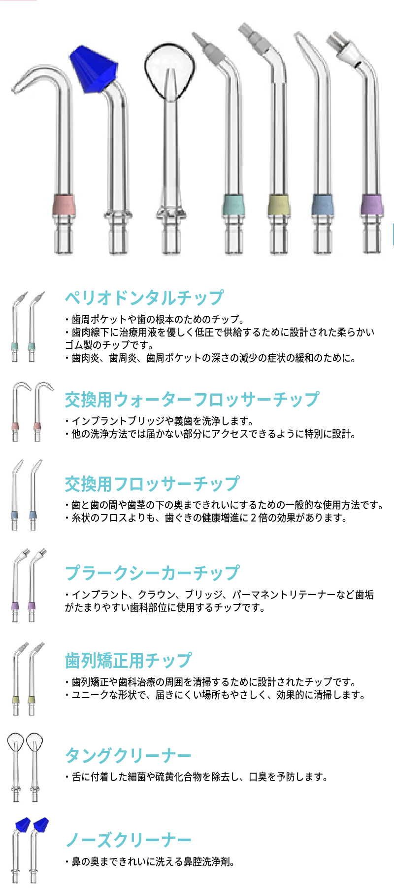 ノズルを使い分けることで、より口内環境を整えることができます。