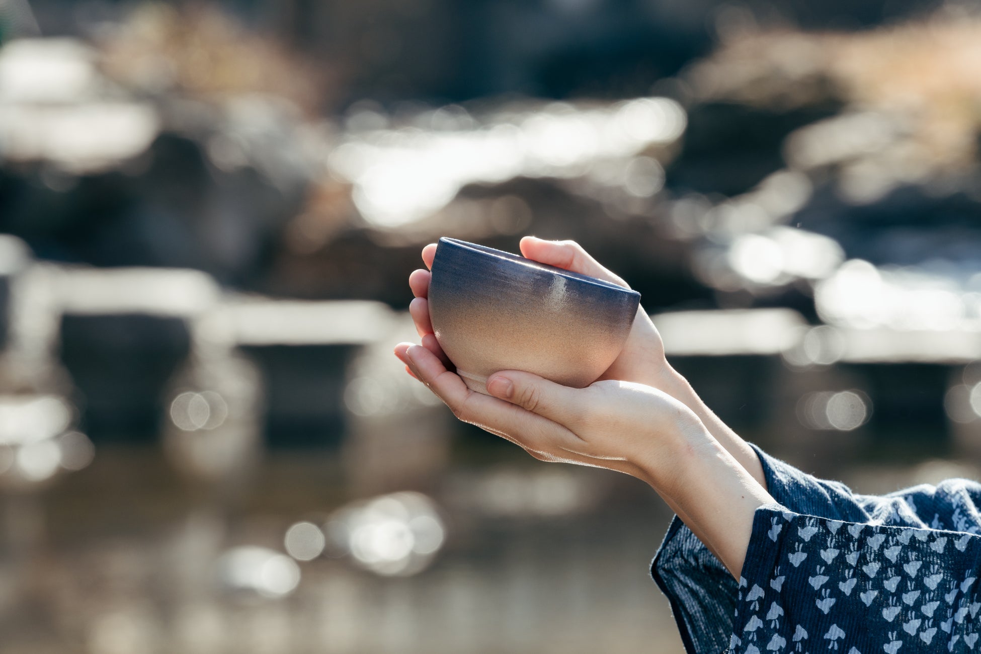 自然の中でのお茶の時間を彩るグッズ、茶かごの中には野点用の茶道具一式を用意します。野点とは屋外で自由にお茶を楽しむお茶会のこと。お茶を点てたことがない方にも楽しんでいただける基本的なセットで用意しました。抹茶椀には、萩焼深川窯の萩焼作家、坂倉善右衛門窯10代目坂倉善右衛門氏が、このメニューのために特別に用意した抹茶椀を準備します。茶道の世界では、「一楽、二萩、三唐津」と言われるほど、江戸時代より萩藩をはじめとする多くの茶人に愛されてきた萩焼。その中でも長門湯本温泉からほど近い三ノ瀬(そうのせ)でつくられる萩焼は「深川萩」と呼ばれ、特に格式の高いお茶碗として知られています。江戸時代から360年間、窯の火をつないできた「深川萩」の茶器の中から、お好みの茶器を選んで野点を体験することができます。