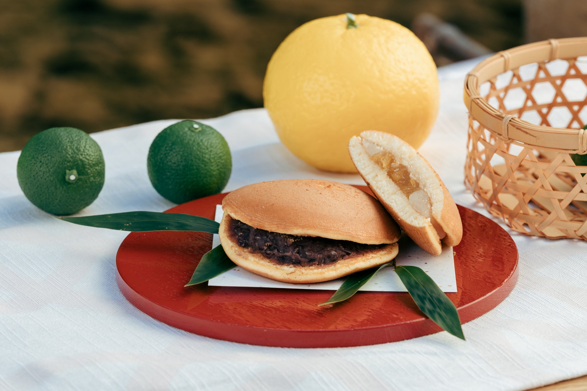 界 長門が運営する「あけぼのカフェ」では、毎日手作りのどらやきを提供しています。通年楽しめる味として、夏みかん、あずき、ゆずきちの3種類を用意。定番の3種に加え、春は桜餡、夏は小野茶味のジェラートを挟んだジェラートどらやき、秋は和栗を丸ごと使った栗餡、冬は地元酒造の酒粕を使った酒粕餡など、季節の食材を使用した季節限定のどらやきもあります。お好みのどらやきを選んで、野点体験を楽しめます。