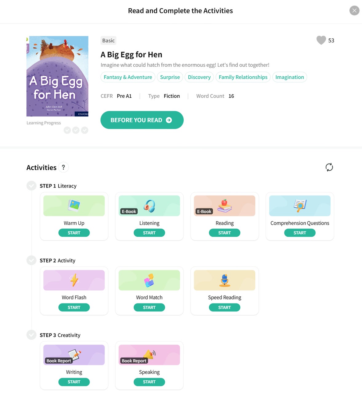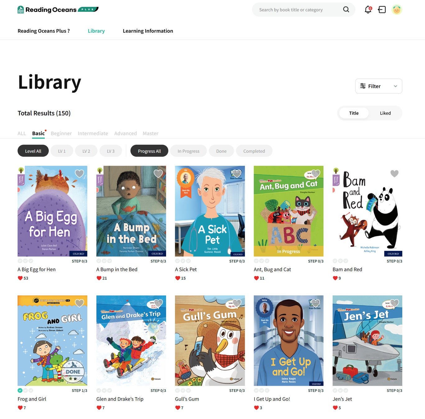 「Reading Oceans Plus」は、韓国で英語教材出版や教育サービスを提供するWoongjin Compassの出版ブランド「Compass Publishing」が開発、提供する英語オンライン教材で、2025年4月にリリースされました。英語書籍を数多く収録しており、幼児から高校生までの幅広い層を対象に、多読を中心にAIを活用した英語4技能向上をサポートします。CEFR※ B1レベルまで対応しているので、本格的に英語を学ぶ学習者にもおすすめです。