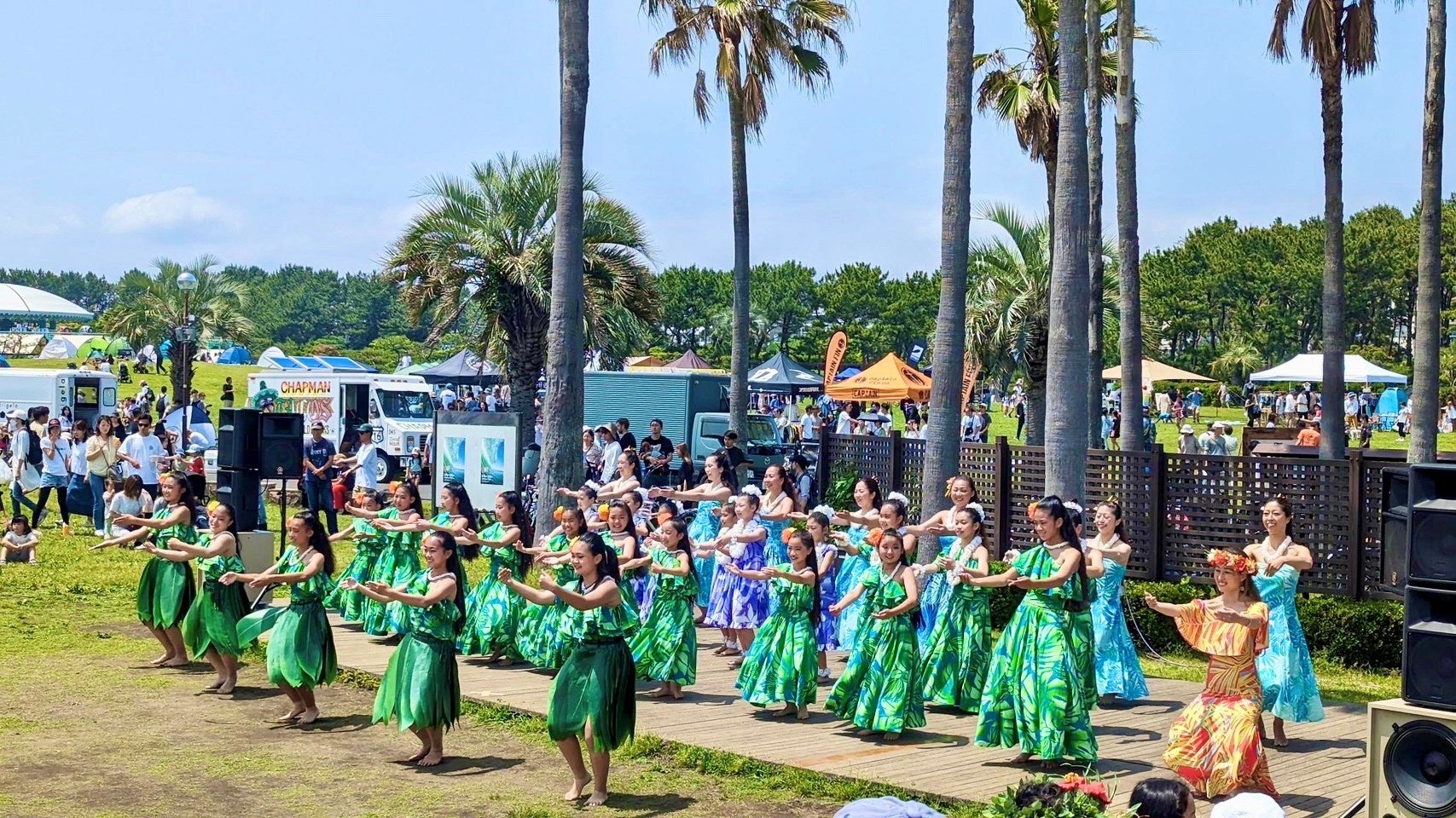 ハワイアンな雑貨、アート、フードなど計19店が出店。フラダンスショーや音楽ライブも。