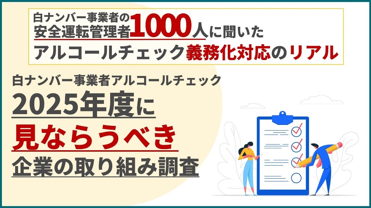 白ナンバー事業者の「アルコールチェック義務化」から1年以上が経過したタイミングに合わせ、「アルコールチェック義務化」の対応状況や課題について調査。