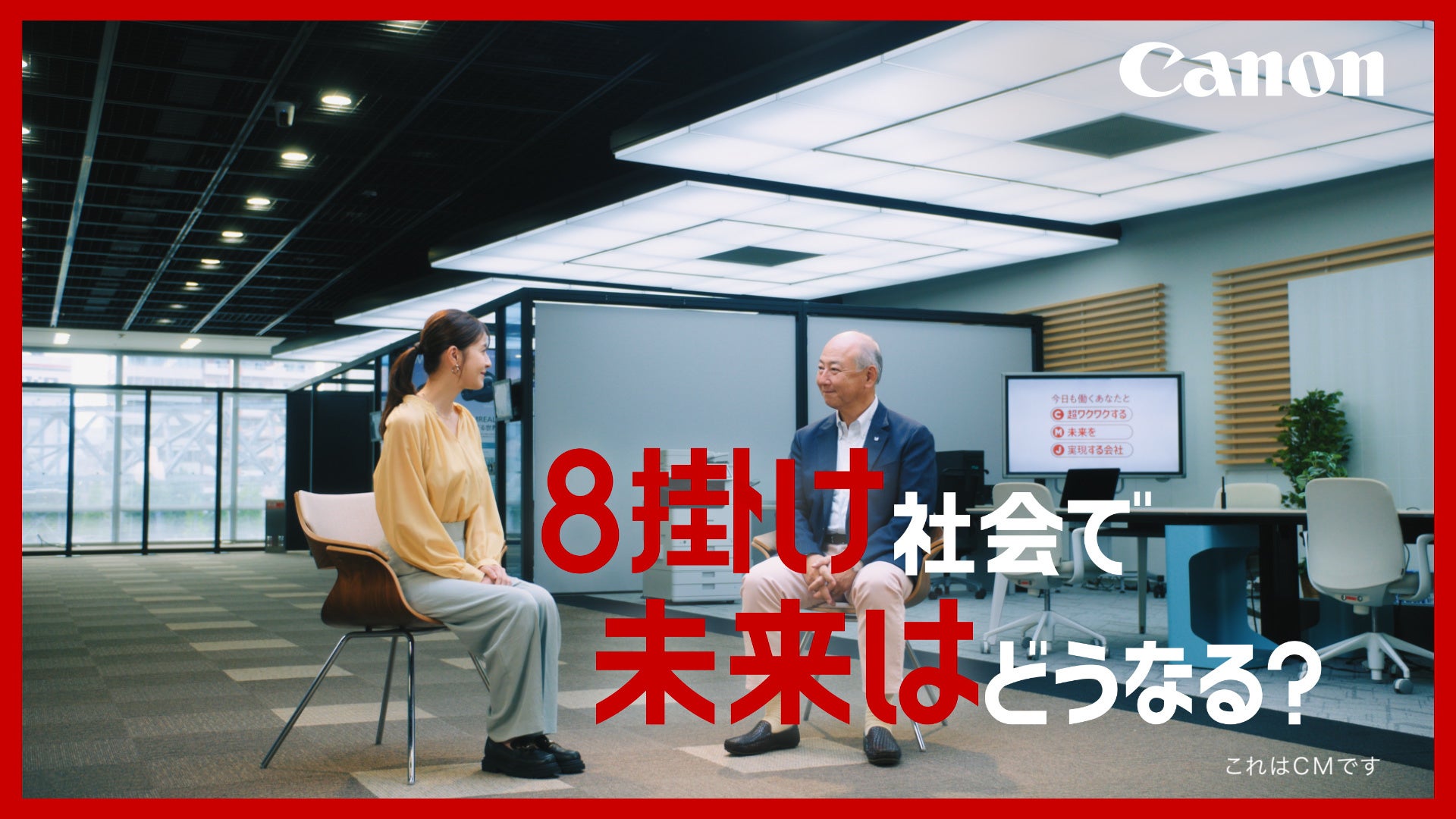 キヤノンマーケティングジャパン株式会社(代表取締役社長:足立正親、以下キヤノンMJ)は、キヤノンMJグループの企業CMに出演中の松本若菜さんと、キヤノンMJ社長の足立正親による対談形式の新CM「対談・映像DXソリューション篇」と「対談・ヘルスケアDX篇」を2025年11月12日より公開しました。2040年に生産年齢人口が現在より約2割減少する「8掛け社会」を見据え、人とAIの協働により新たな価値を創出し、ワクワクする未来の実現を目指すキヤノンMJグループの姿勢や取り組みを伝えます。