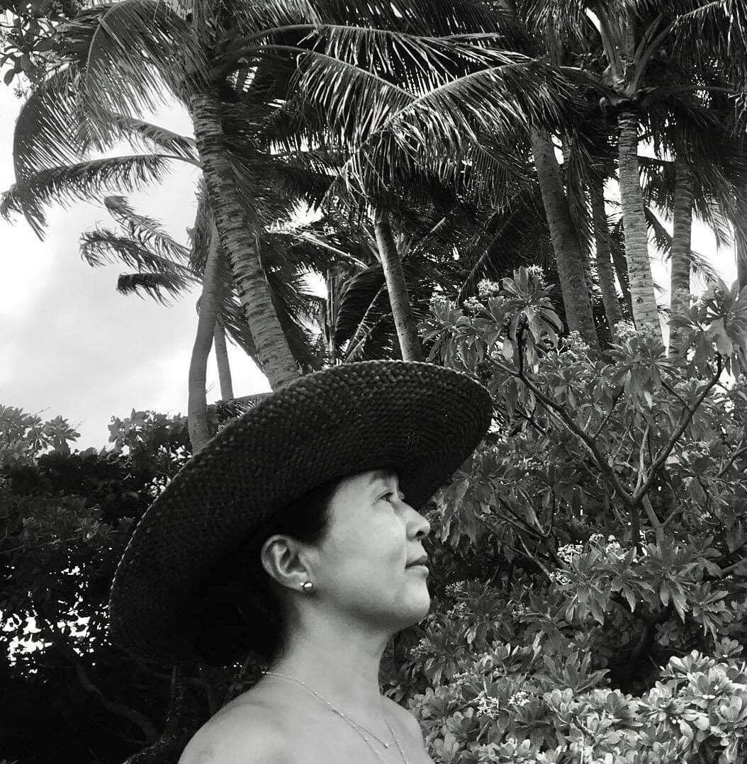 1969年東京生まれ。多摩美術大学卒業後、東京を拠点にアーティストとして活動。一転し、2004年より太平洋で船上生活を始める。のち、ハワイ・モロカイ島のサンダルウッドの丘に家を建てる。現在は東に数マイル移動し、「島の天国131番地」と呼ばれる高台の家で、心理学者の夫と二人の娘、馬や犬たちと、1000年後の未来の風景を絵描きながら暮らしている。