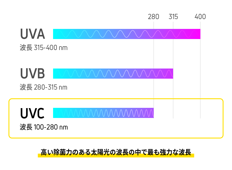 このUVCが持つ除菌力を活用した方法がUVC除菌(紫外線除菌灯)です。
