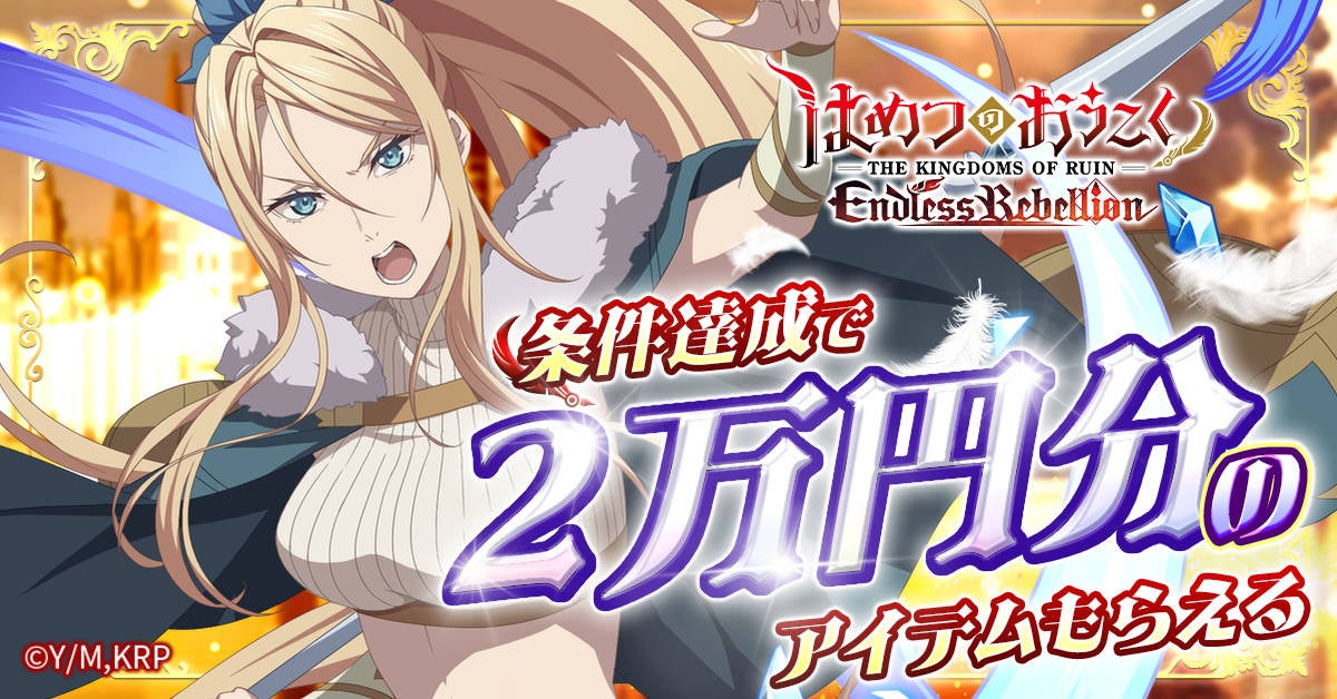CTW株式会社は、G123の新作ゲームとして「はめつのおうこく Endless Rebellion」をリリースしたことをお知らせいたします。また、これを記念して、ゲーム内外にてリリース直後限定の豪華キャンペーンを開催いたします。