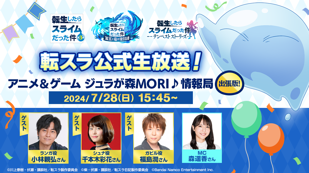 2日目の7月28日(日)には「転スラ公式生放送!アニメ&ゲーム ジュラが森MORI♪情報局 出張版」の公開生放送が決定!