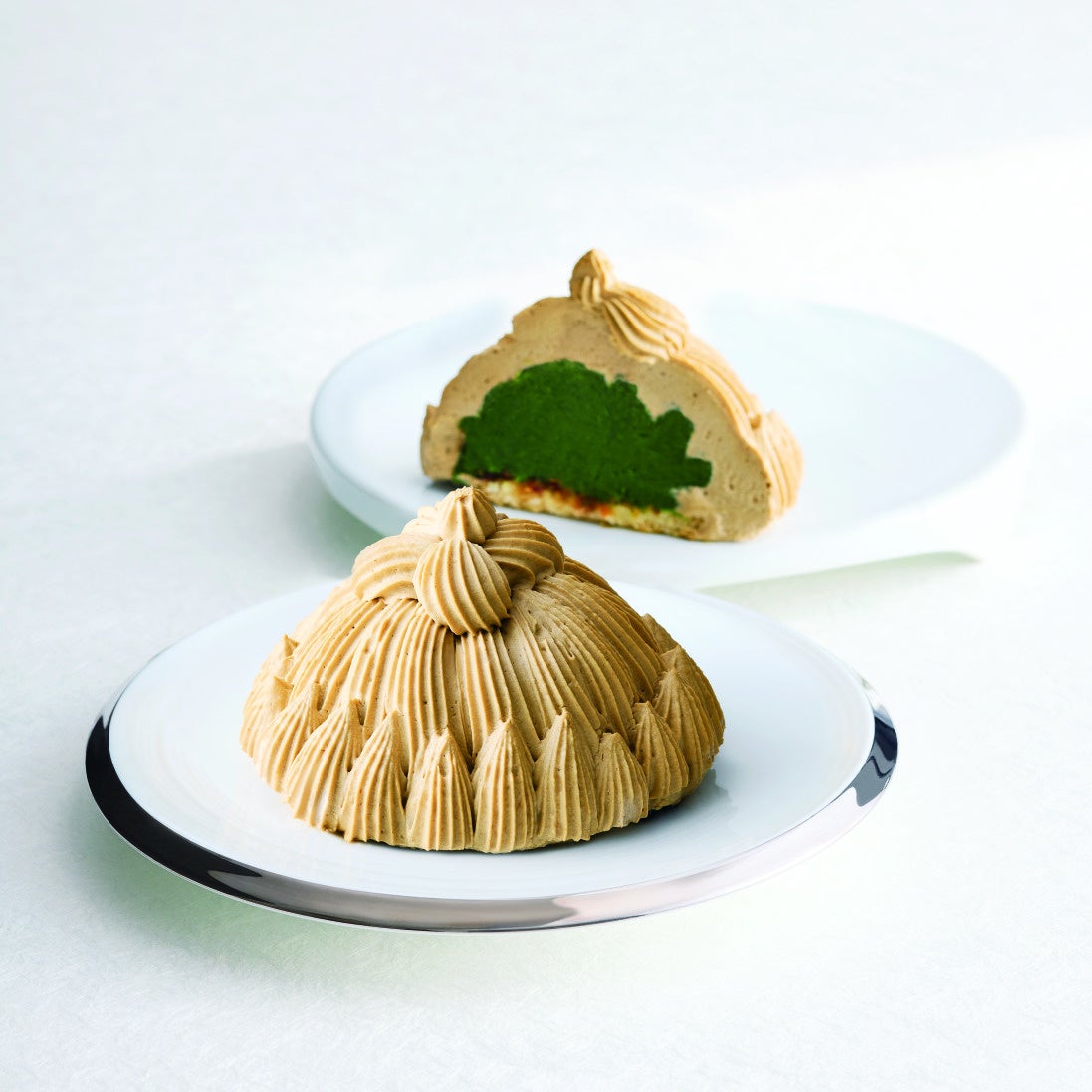 東京會舘で約70年愛され続けている「マロンシャンテリー」に、ほうじ茶の芳醇な香りと抹茶のほろ苦さを掛け合わせたデザートです。