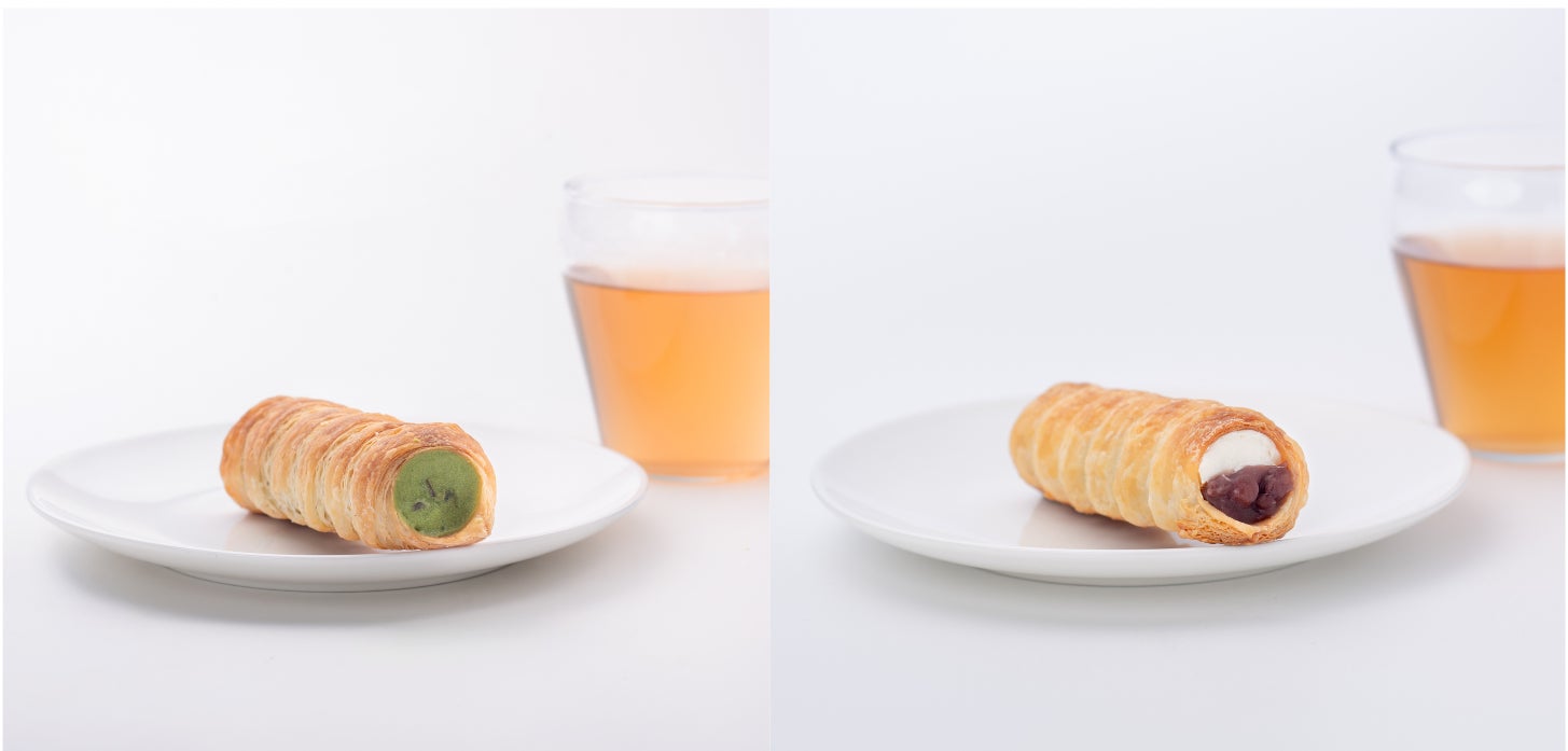 左)抹茶コルネあずき茶セット(1人前)750円