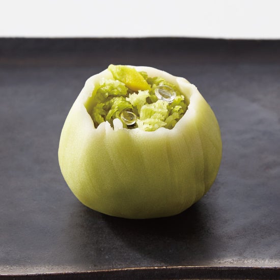練り切りで茶葉を美しく表現した繊細な和菓子です。