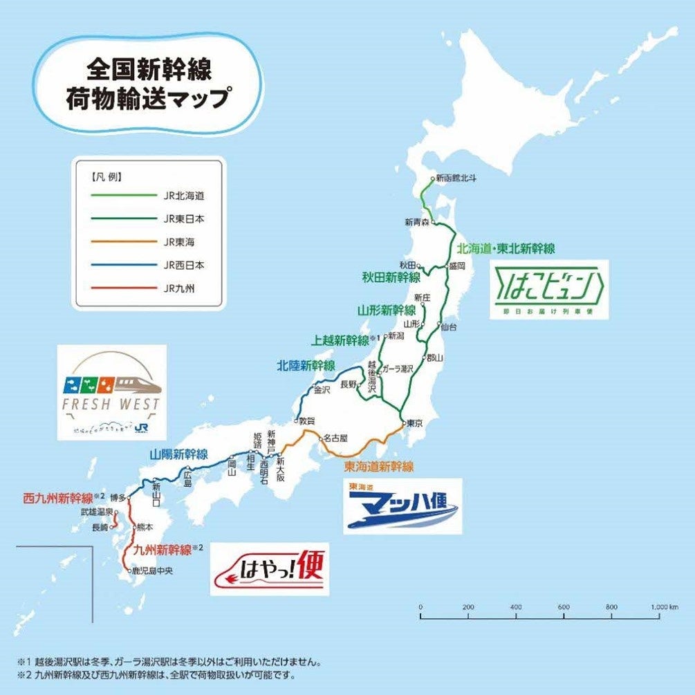 ・JRグループ6社の各エリアから特産物を新幹線で即日輸送