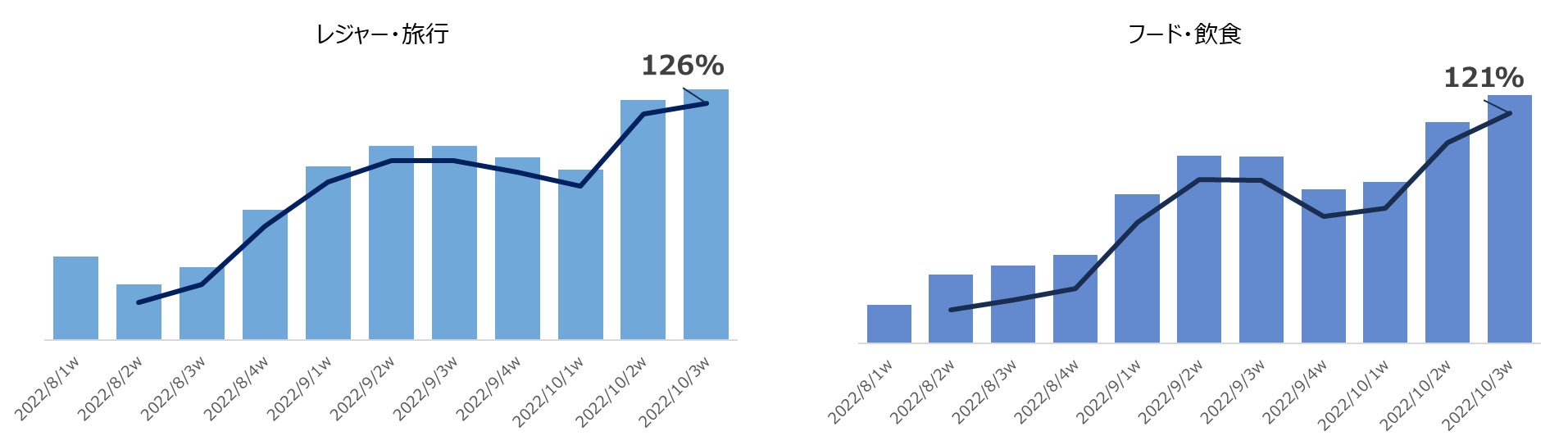 (※2)バイトル内「レジャー・娯楽施設」「旅行」の求人件数合計を8/7週と10/16週で比較