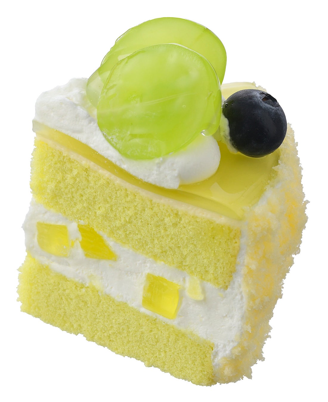 特長:ジューシーな果肉と上品な甘み&香りが特長の旬の果実「シャインマスカット」を楽しむ季節限定のショートケーキです。マスカットと相性のいいヨーグルト風味クリーム(マスカットゼリー入り)をマスカット風味スポンジでサンドし、上面にシャインマスカットを飾りました。口いっぱいに広がるマスカットのみずみずしい味わいをお楽しみください。