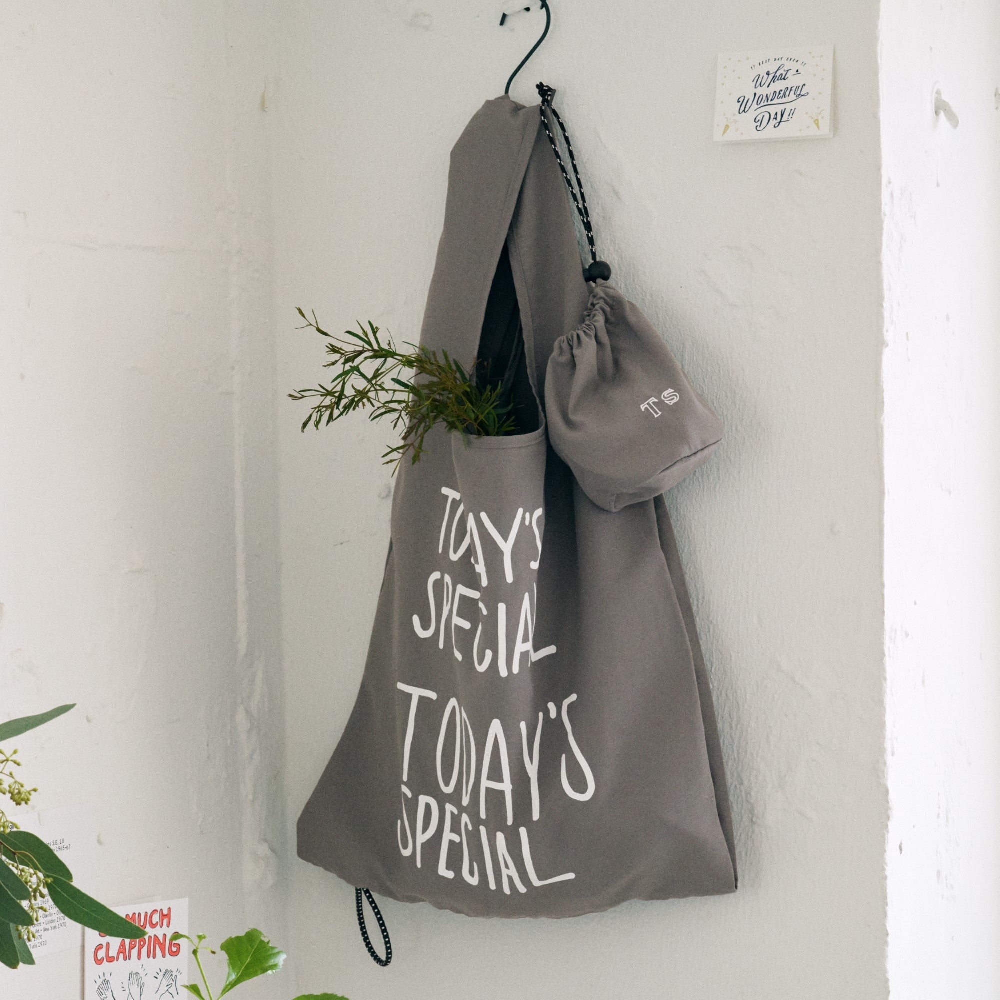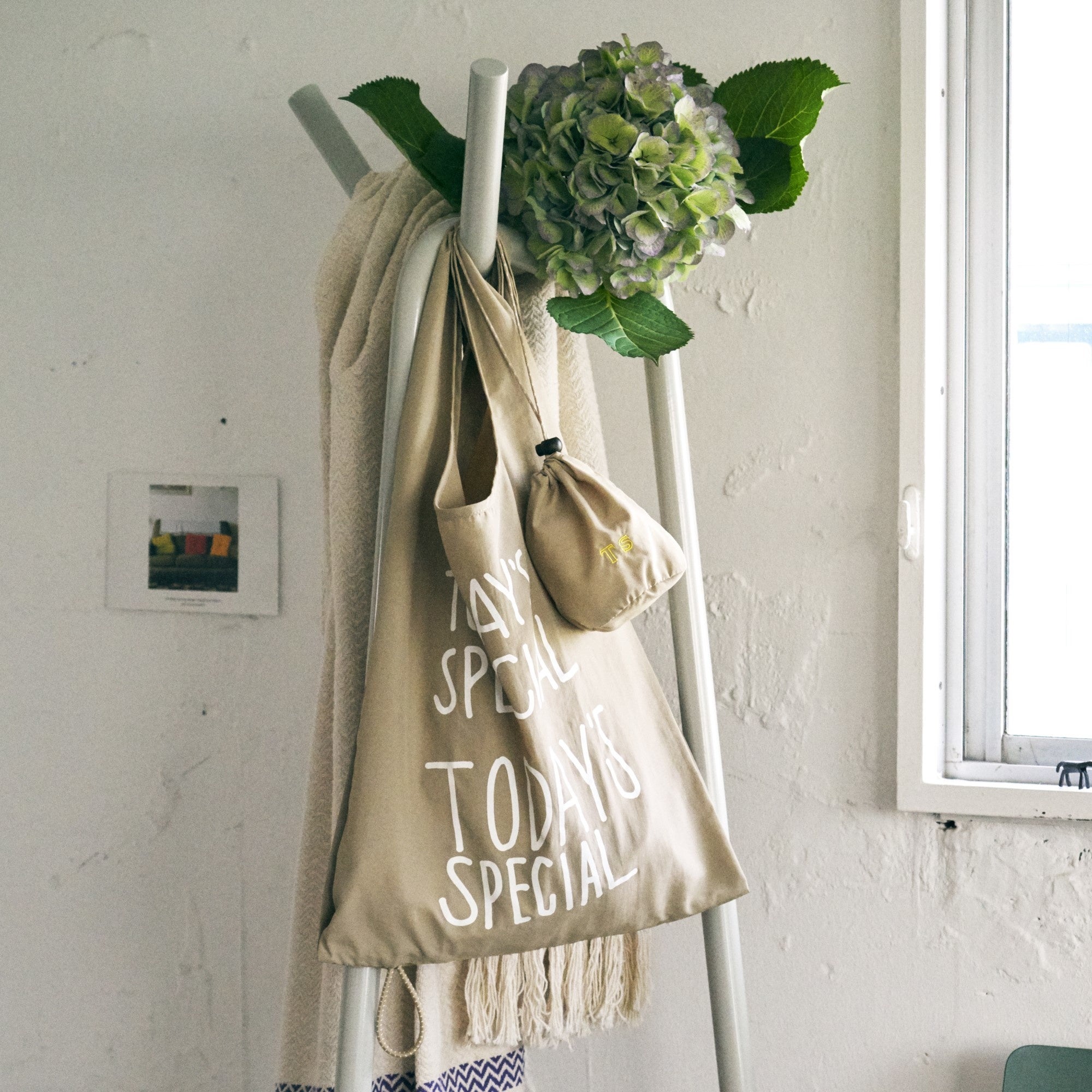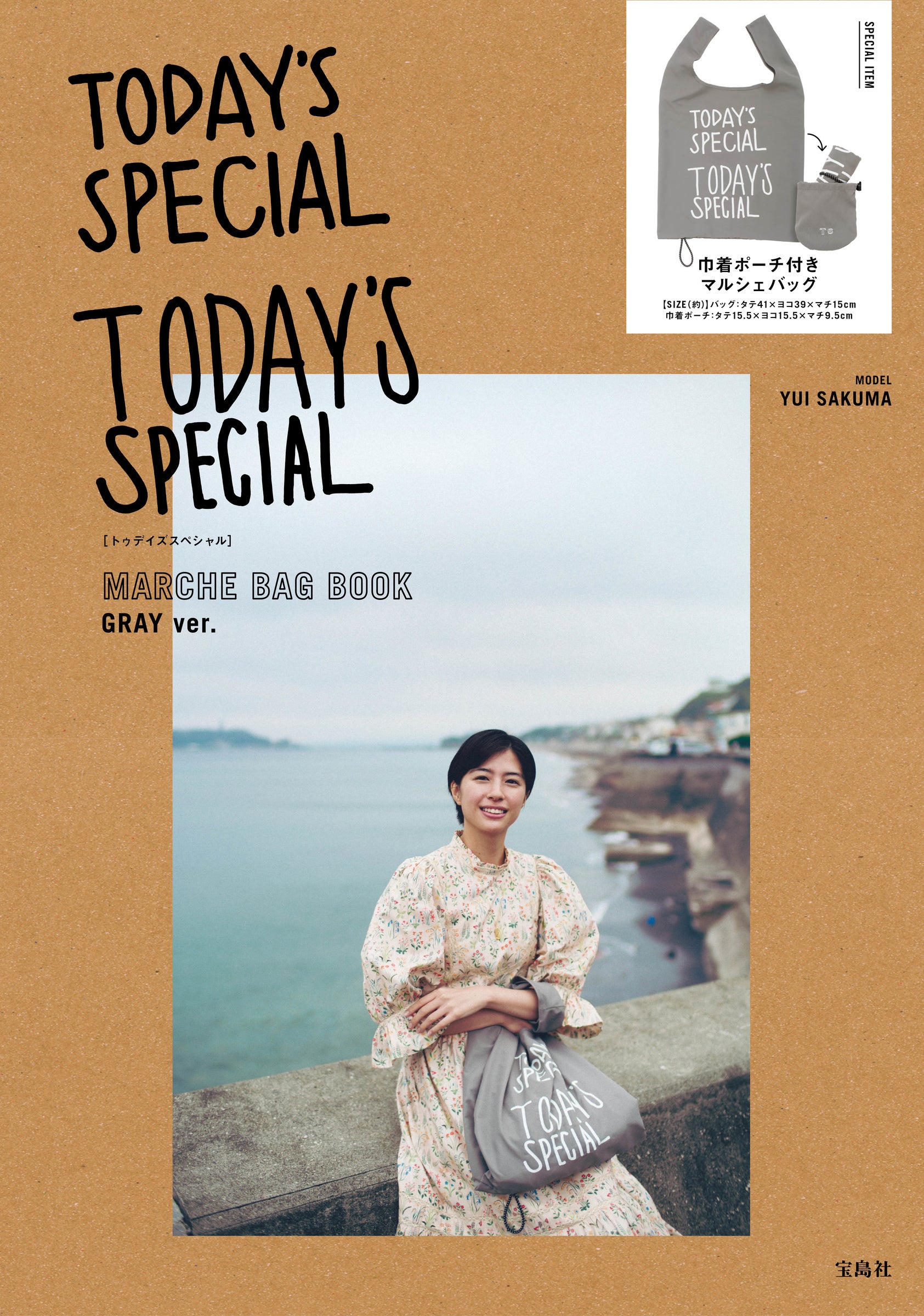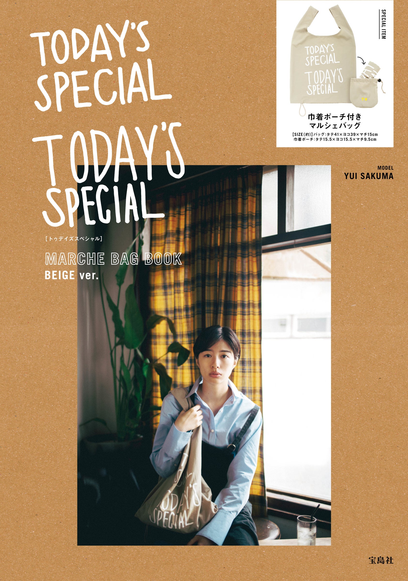 “マルシェバッグ”とは、TODAY'S SPECIALがブランド創設時から作り続けている、マーケットや市場(マルシェ)で、たくさん買い物できるような大きなバッグのこと。本誌限定アイテムは、ブランドを代表する“マルシェバッグ”をベースにした限定カラー&サイズのバッグ。カラーはベージュ、グレー、イエローの3種。サイズは、ブランド既存のマルシェバッグとミニマルシェバッグの中間の大きさとなる本誌限定サイズです。使わないときは丸めてゴムで留めて付属の巾着ポーチに収納できるので、毎日のお買い物やお出かけにもおすすめです。ベージュとグレーは全国の書店およびネット書店、イエローはTSUTAYAおよびTSUTAYAオンラインショッピング限定での取り扱いです。