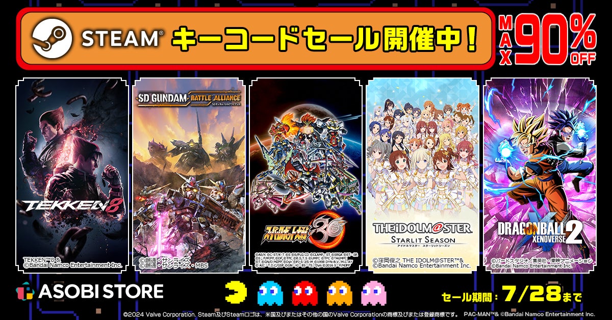 株式会社バンダイナムコエンターテインメントが当社のECサイト『ASOBI STORE』にて最大90%OFFのSteamキーコードセールを開催したことをお知らせいたします。
