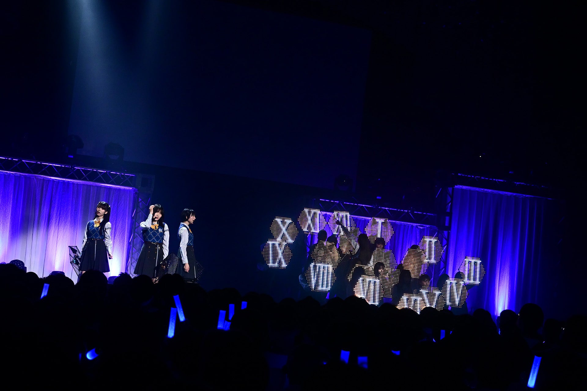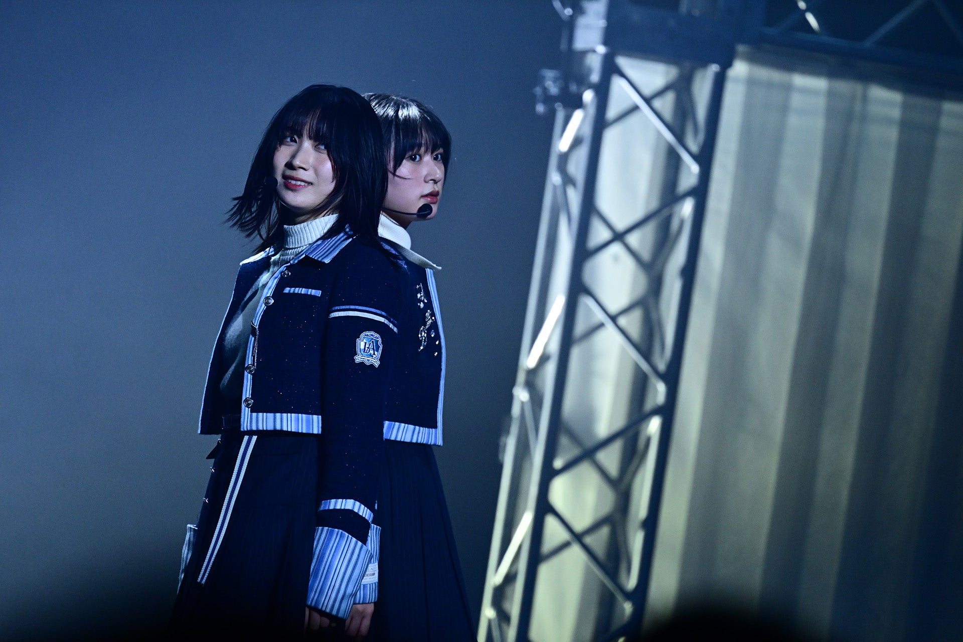 リリース当時の衣装で歌ったデビュー曲「青空について考える」から始まり、乃木坂46「制服のマネキン」のカバーでは気迫に満ちたダンスで空間を制圧。「暗闇の哲学者」では、ハンディビジョンLEDを一人ずつ手に持ち、楽曲のイメージや歌詞を映し出すスペシャル演出で魅了。杉浦英恋&八木仁愛などユニットでの楽曲披露でも大いに盛り上げ、グループのポテンシャルを気持ちのこもったパフォーマンスで示した。メンバーとファンの想いが重なり合った熱いステージ。臨場感たっぷりの編集で届ける、全曲ノーカットのライブ映像をぜひ楽しみにしていただきたい。