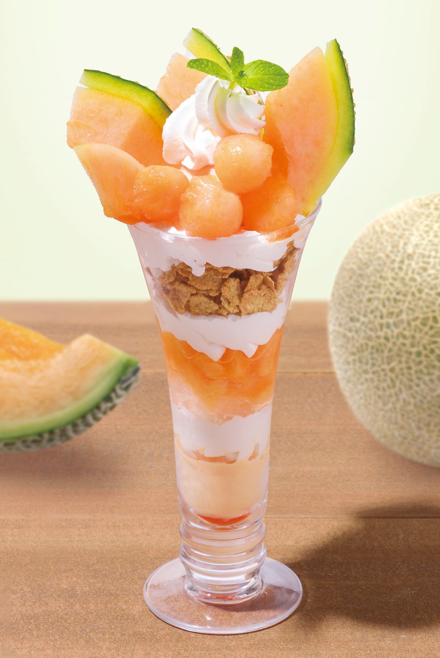 特長:完熟の甘みとコク深い味わいの「赤肉メロン」をたっぷり使用した季節限定パフェ。メロンのみずみずしい果肉やメロンジェラートに、クリームの乳味が絶妙に調和します。