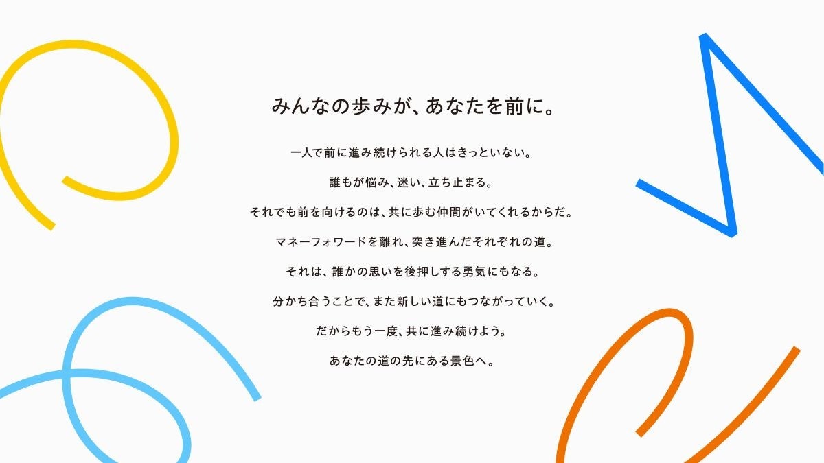 マネーフォワードは創業以来「お金を前へ。人生をもっと前へ。」というMissionの実現に向けて、事業と組織を成長させてきました。なかでも、サステナブルな成長に向けた重点テーマのひとつとして「Talent Forward(社員の可能性をもっと前へ。)」を掲げており、共通の目標に向かって進むメンバー1人ひとりの力が、当社のこれまで成長の原動力であると考えています。