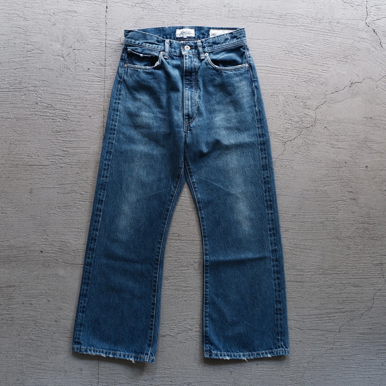 - インラインには存在しない本企画オリジナルタイプ。アウトラインはストレート、内股はフレアのカッティングで構成され、フロントからはフレア、サイドからはストレートに見える新たなシルエットバランス。既存のジーンズで探しても代役の見つからない真新しいパターンで起こした仕上がりになっております。