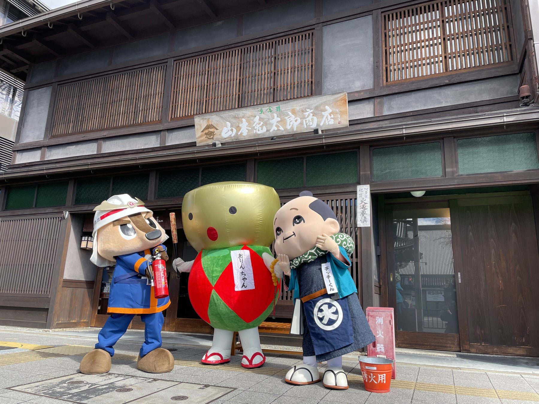 下京区“春の火災予防運動”「ゆるきゃらトリオde火の用心」