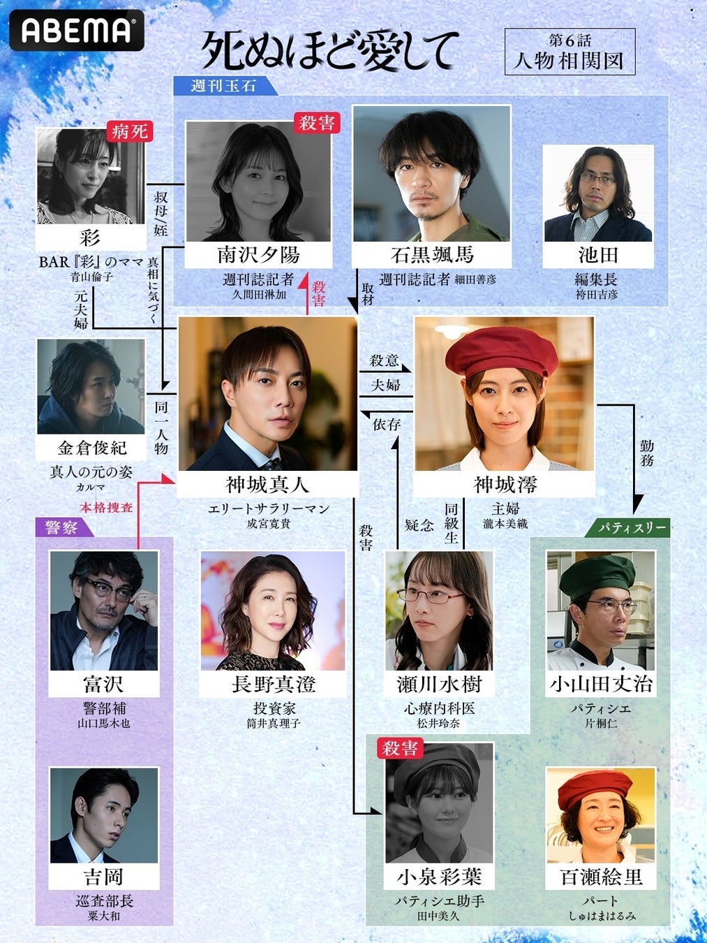 成宮寛貴演じる“神城真人”の殺人遍歴が浮き彫りに!殺人に次ぐ殺人に視聴者戦慄/逢引きを重ねていた不倫相手が逆上!「愛してる」と真人にすがるも「そんなものは愛じゃない。だから…」『死ぬほど愛して』第6話