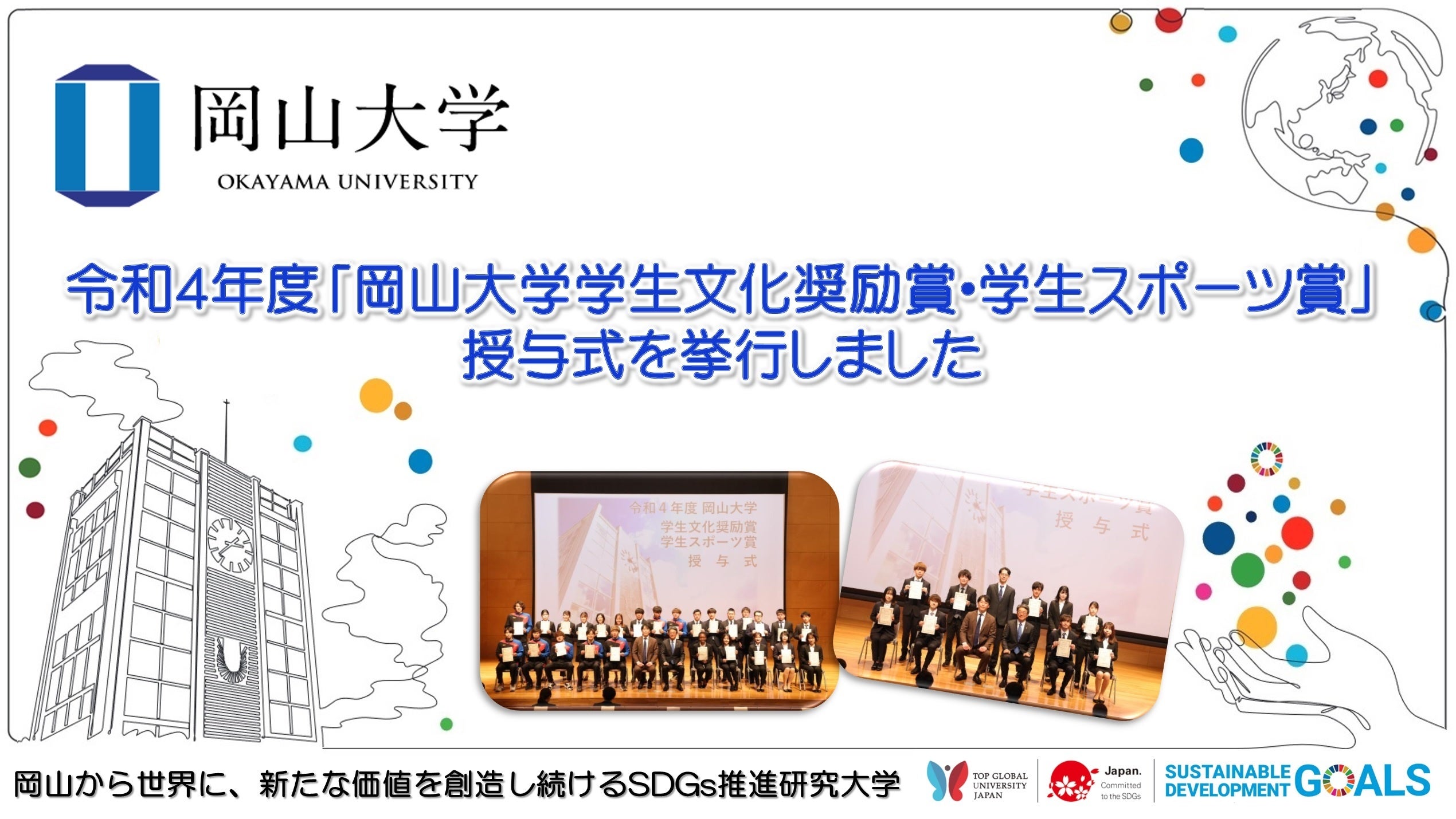【岡山大学】令和4年度「岡山大学学生文化奨励賞・学生スポーツ賞」授与式を挙行