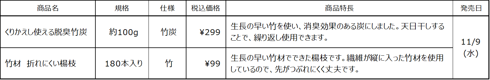 11/9(水)無印良品 素材に竹を使った日用品 新商品発売のお知らせ