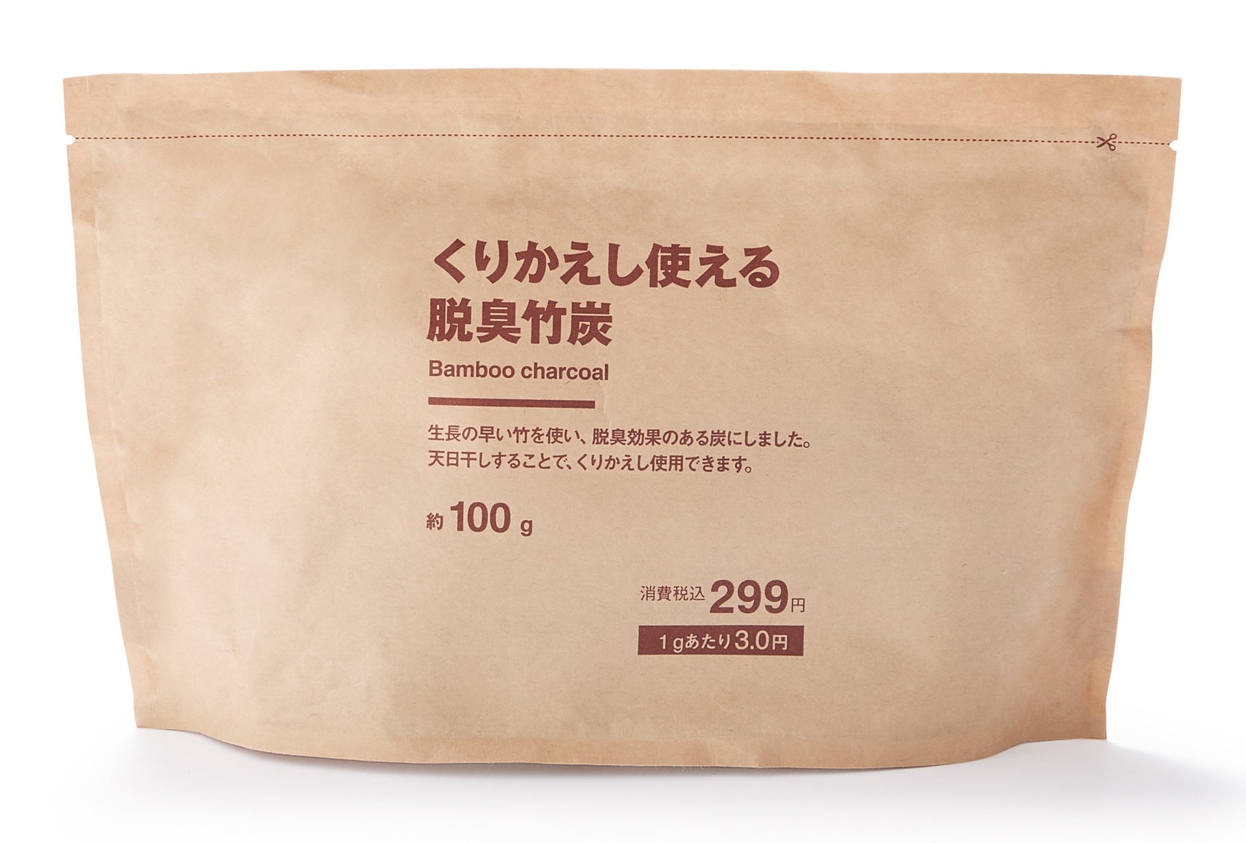 「くりかえし使える脱臭竹炭」は竹炭には無数の細かい孔があいていて、通気性・通水性に優れているという竹の特長を生かした商品で、天日干しすればくりかえし使うことができます*。必要な分だけ購入できる少量タイプで、容器に移し替えてもパッケージのままでも使うことができます。靴箱やトイレ、冷蔵庫、クローゼットなどいろいろな場所で使えます。
