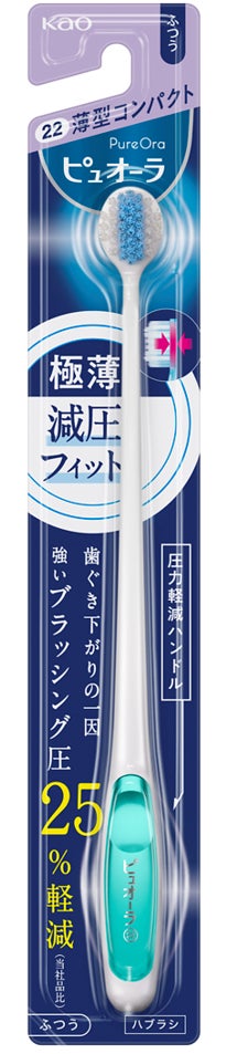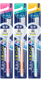 「ピュオーラハブラシ」は、毎日の歯磨きで感じる、磨きにくいストレス、特に「奥歯の奥」「ハグキのキワ」「すき間」に届きやすくフィットして磨けるよう、ヘッドの厚さを花王史上最薄の2.5mmに改良。「極薄超フィット」のハブラシとして、磨きやすさへの新アプローチを提案します。