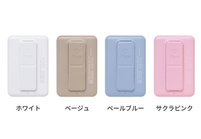 カラーはホワイト、ベージュ、ペールブルー、サクラピンクの4色展開で、iFaceのケースと合わせて楽しむこともできます。コンパクトなデザインなので、バッグやポーチといった狭いスペースにも収まりよく、持ち運びに便利です。旅行やイベントなど、充電を気にせずに楽しめます。