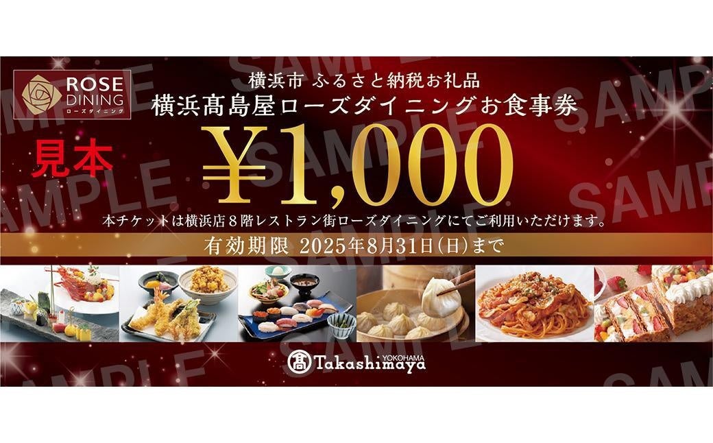 横浜高島屋8 階レストラン街ローズダイニングの全店舗で使用できるお食事券です。