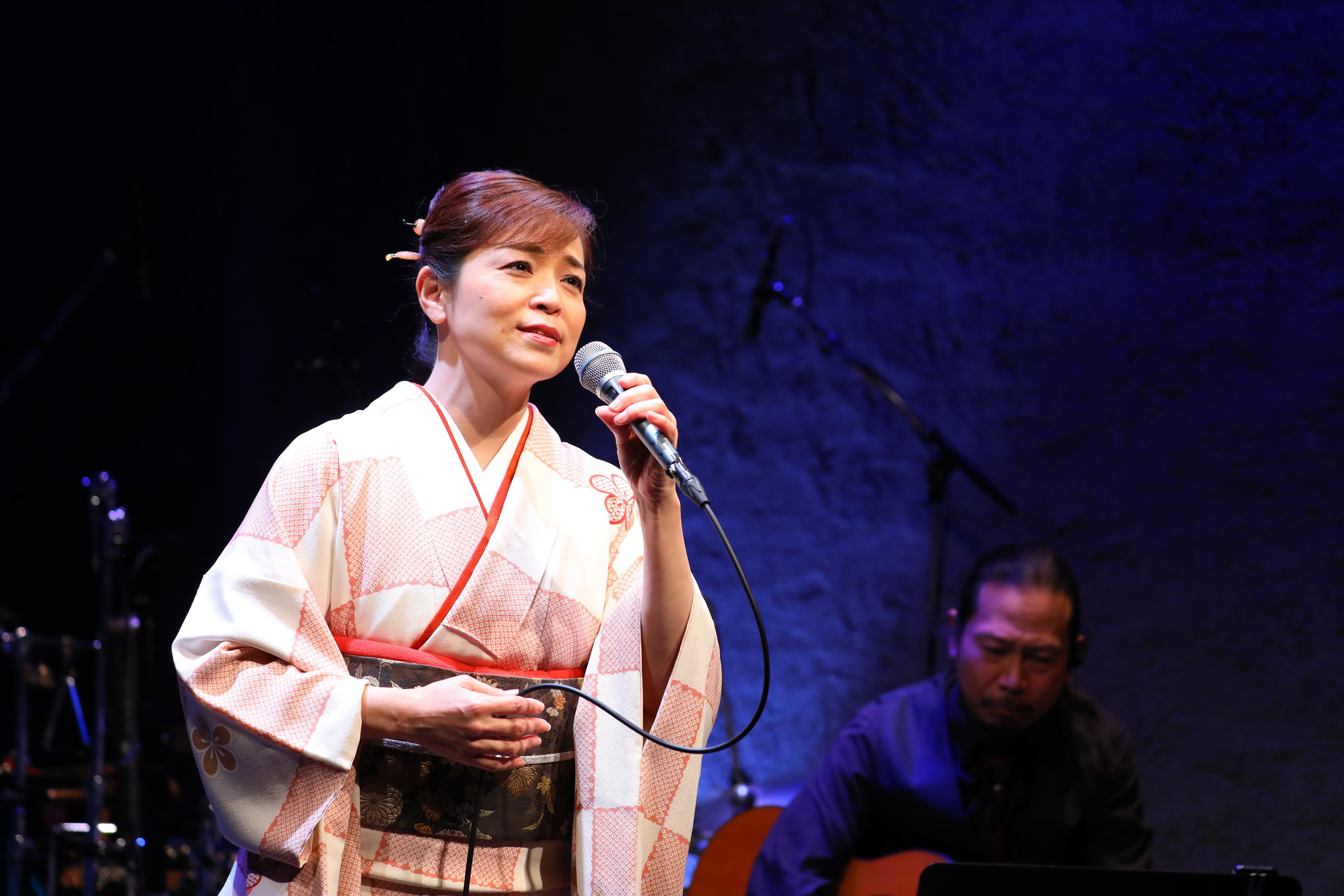 ライブは、NHK「お江戸でござる」のエンディングテーマとなった「花暦」から華やかに幕を開けた。 続いては、吉幾三作曲で石原自身の故郷について書かれた「濃尾恋歌」。