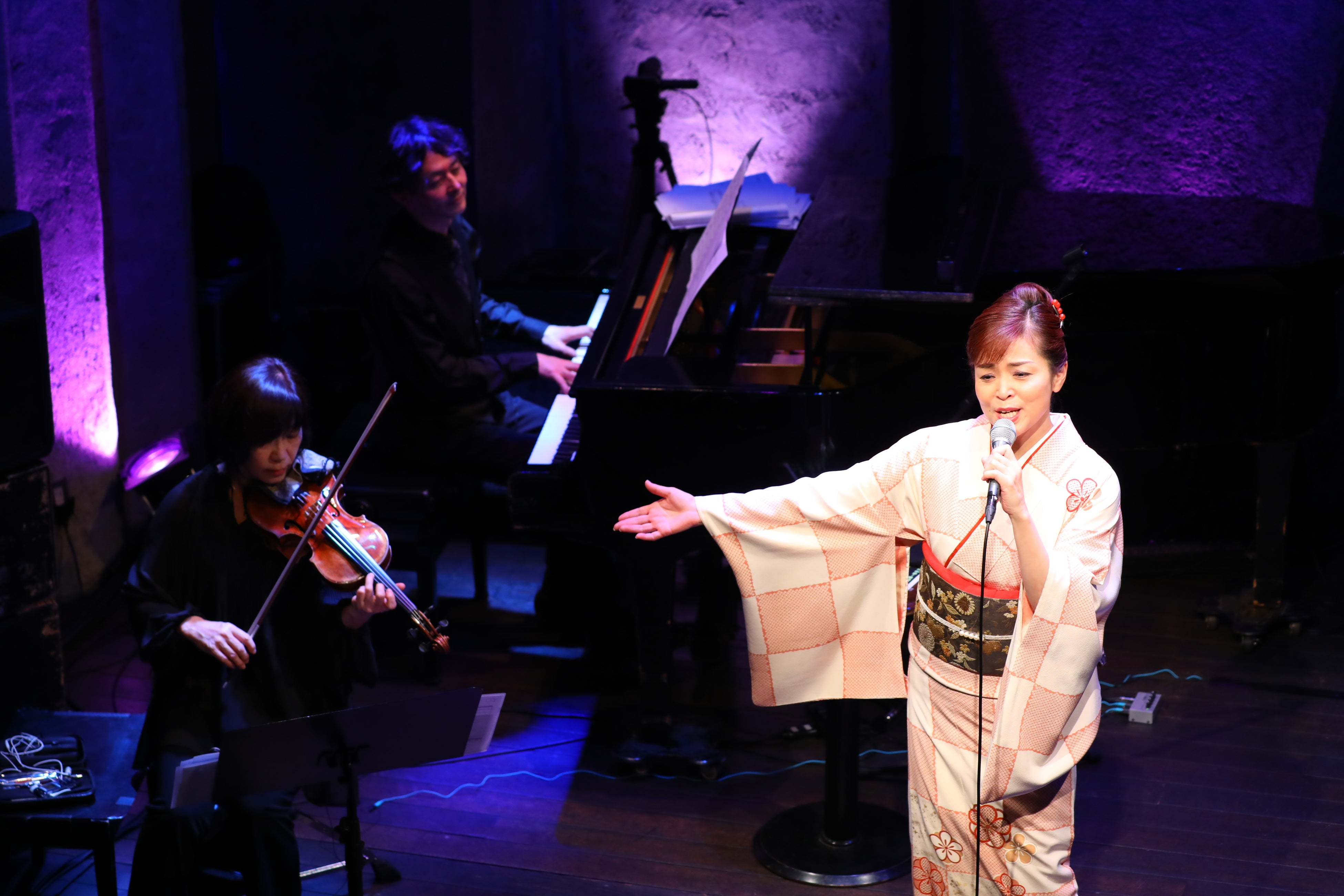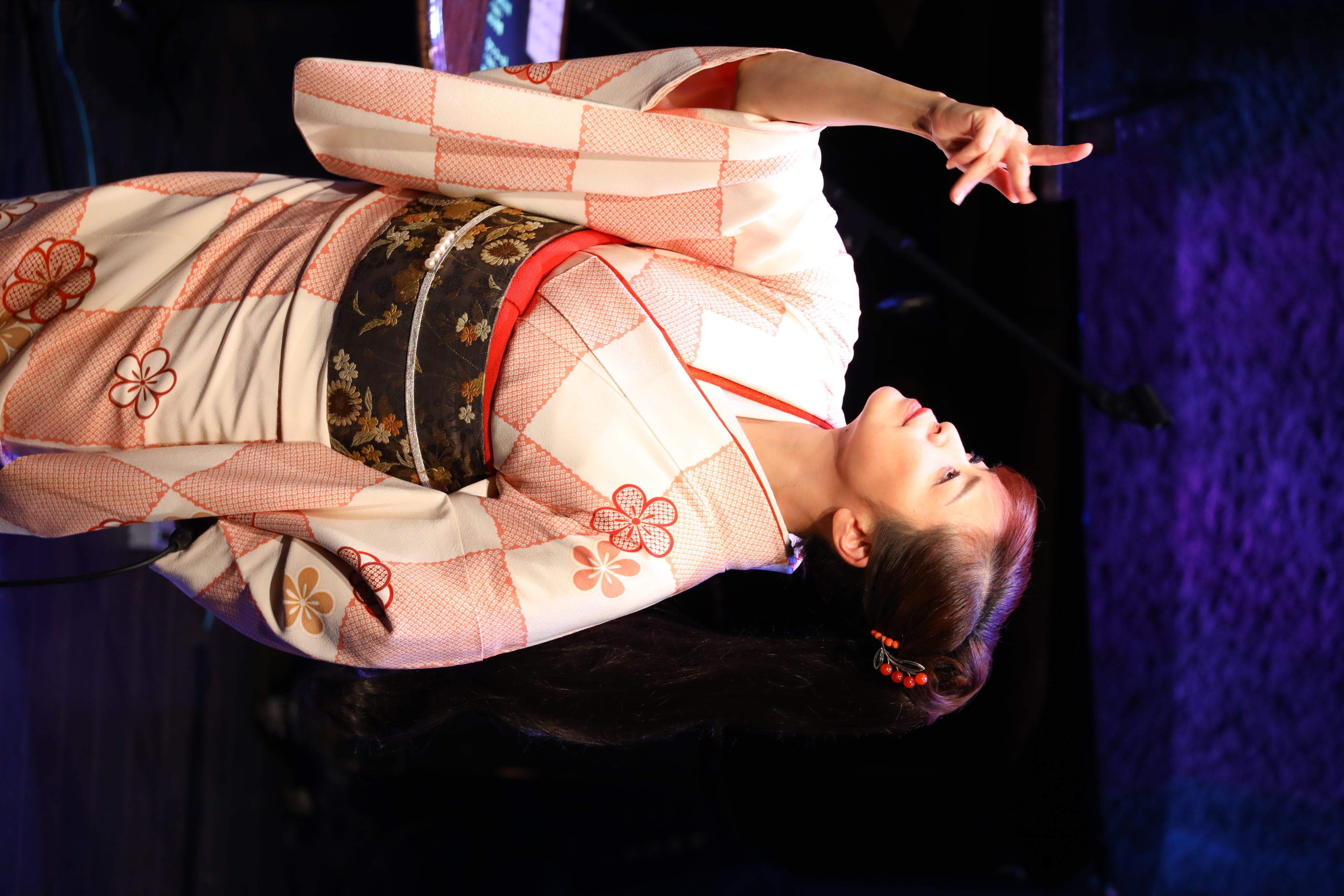 昼公演の第1部はテーマを“オリジナルソング”とし、初春らしく梅の柄の着物を着て自身のオリジナル曲だけを披露する回。