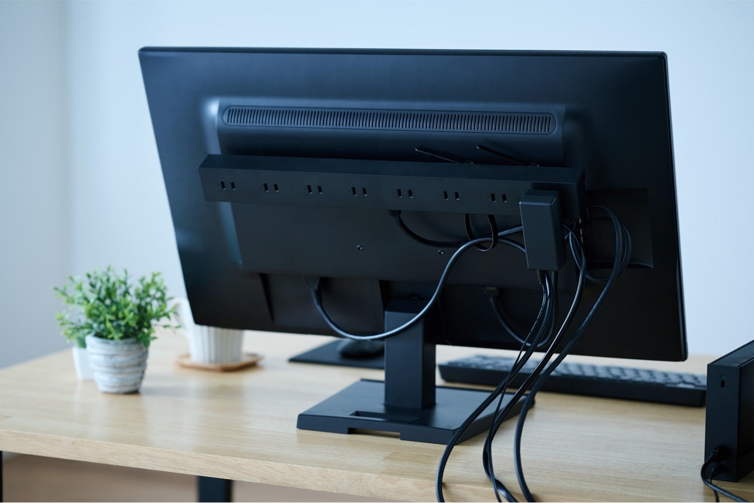 デッドスペースの活用で空間すっきり!テレビやディスプレイの裏に取り付けられる8口の電源タップです。ホコリが溜まりやすい床のお掃除もスムーズに。テレビ裏の配線を整理し、お部屋の綺麗をキープします。