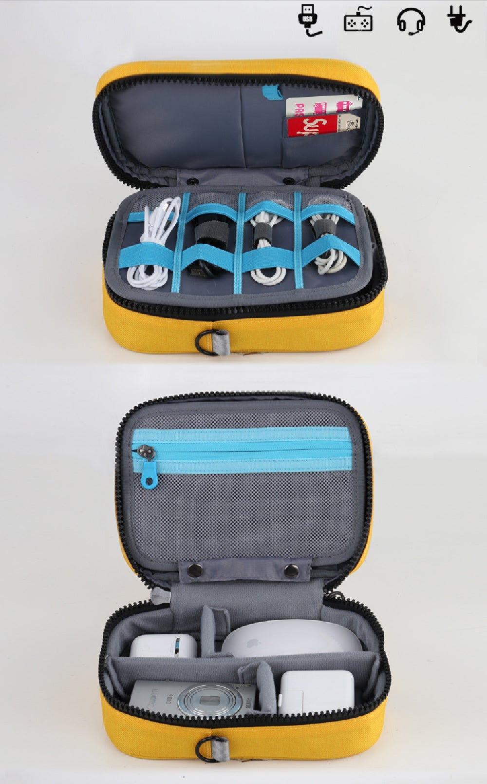 充電器やマウス、カメラ、アダプター、ハブ、USBなど、様々な細かいガジェットを収納。