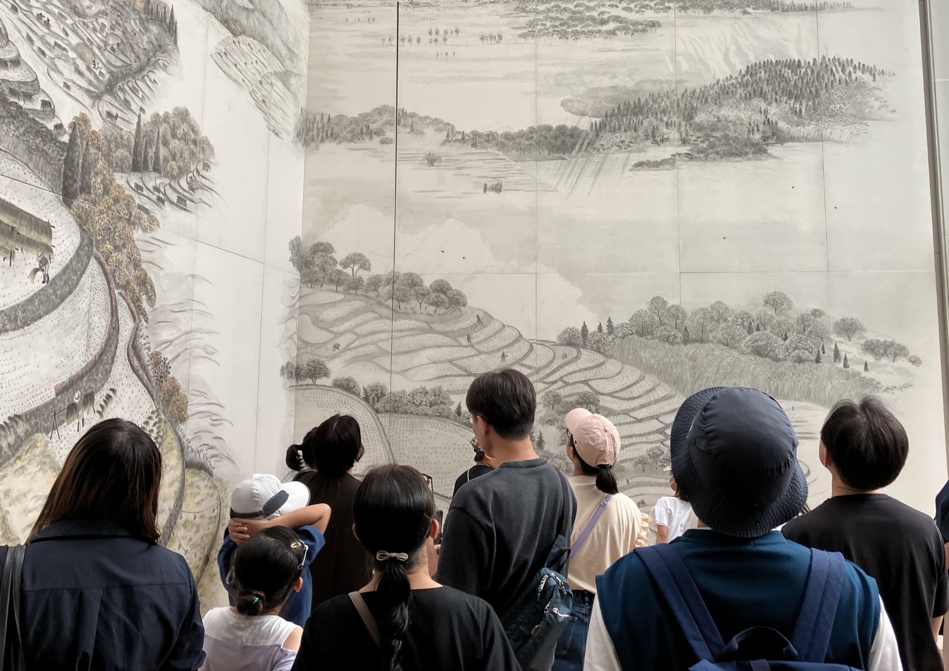 た、高さ約8mの壁画です。プレナス茅場町オフィス7階から8階