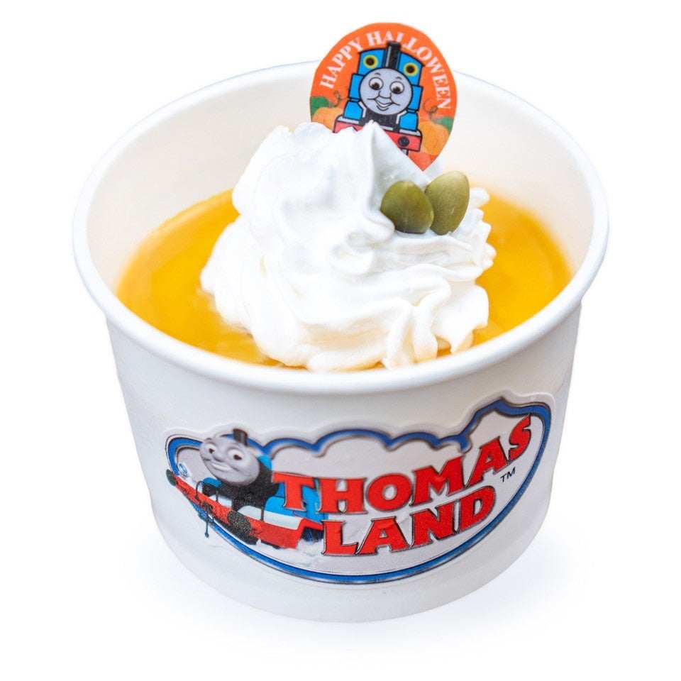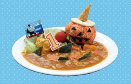 また、トーマスランドのレストランでは、魔女の帽子を被ったパンプキンが目を引く「パンプキン甘口カレー」やカルボナーラに甘みたっぷりのカボチャを組み合わせた「エビフライとカボチャナーラのパスタプレート」など見た目も味も楽しめるメニューや、おやつタイムにぴったりなかぼちゃのプリンやパンケーキも販売いたします。