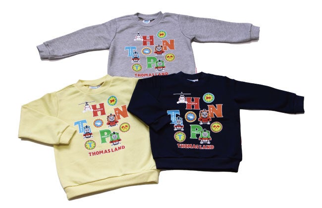 トーマスや仲間たちと一緒にアルファベットや数字が学べるトレーナーを新発売。3つのカラーバリエーションから選べ、可愛い見た目はもちろん着ていて楽しくなる商品です。これからの季節にぴったりなトレーナーとなっておりますので、ぜひご注目ください。
